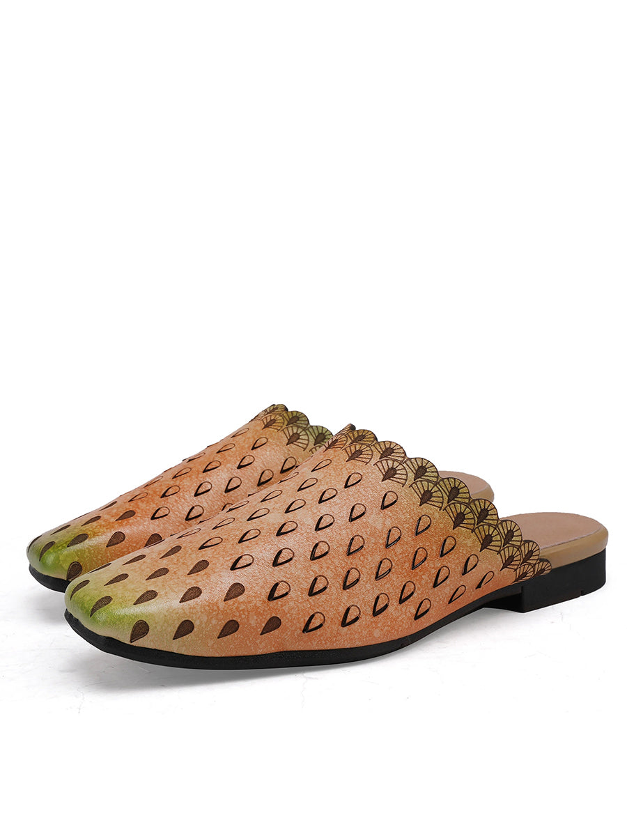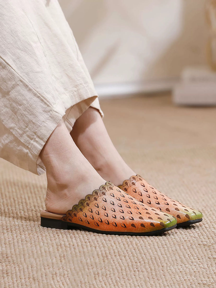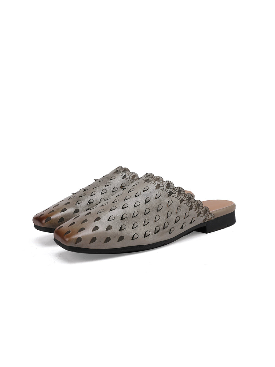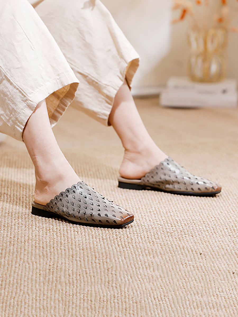 Women Vintage Hollow Out Leather Slippers