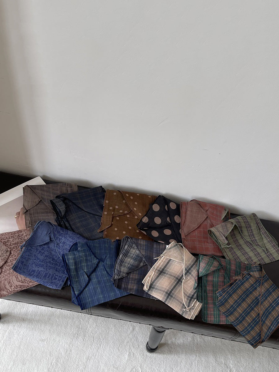 Women Vintage Plaid Dot Hair Band Scarf