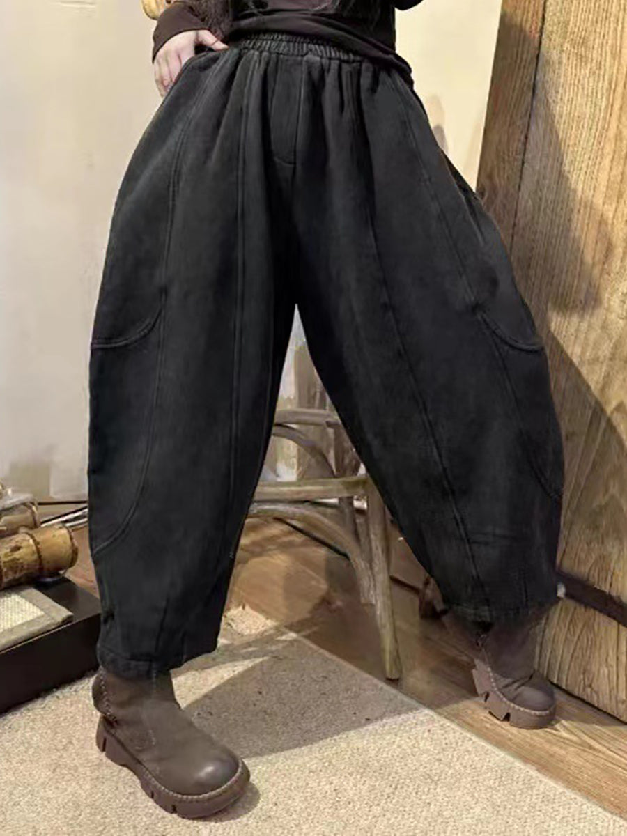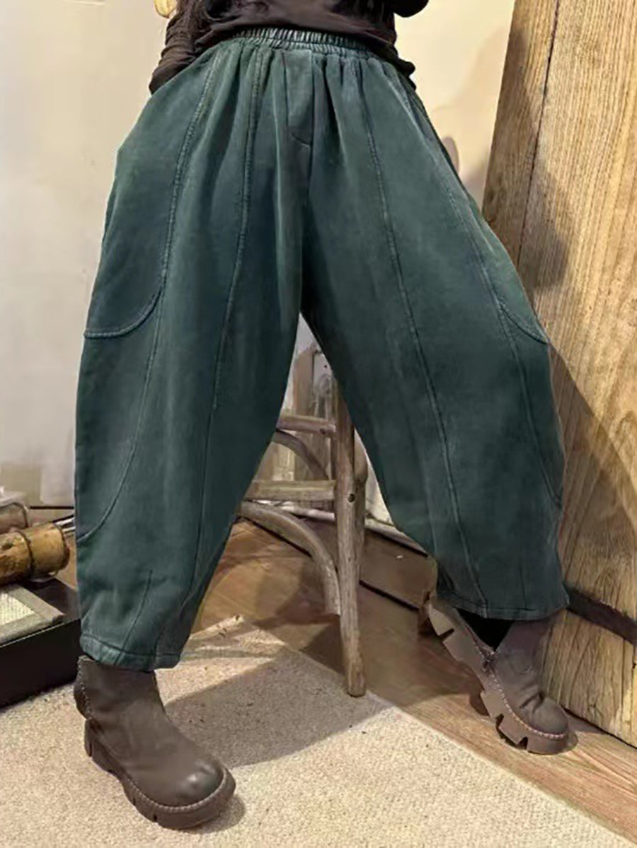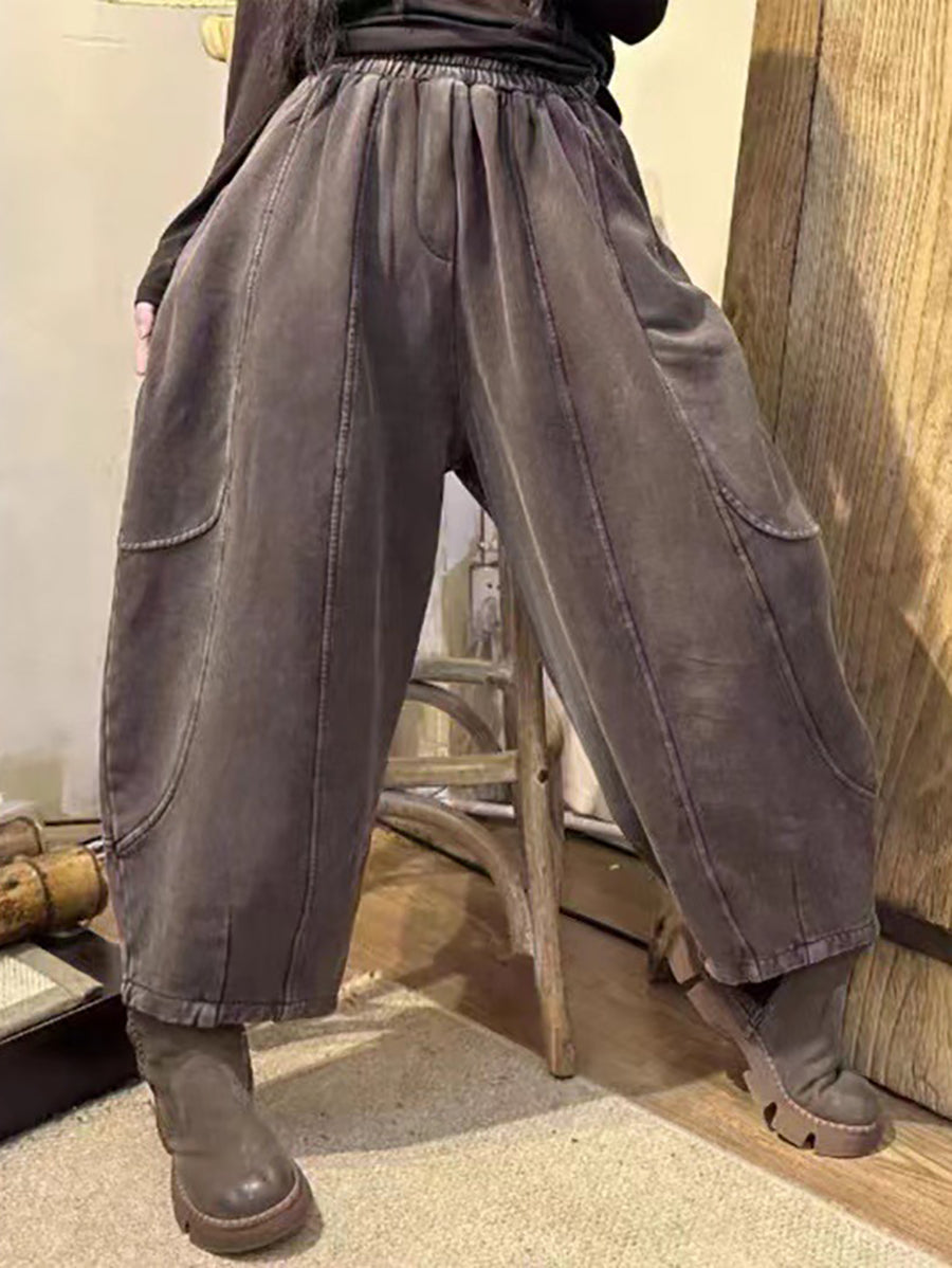 Women Vintage Worn Solid Spliced Loose Pants