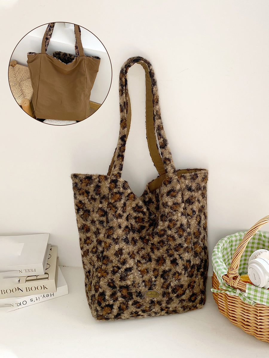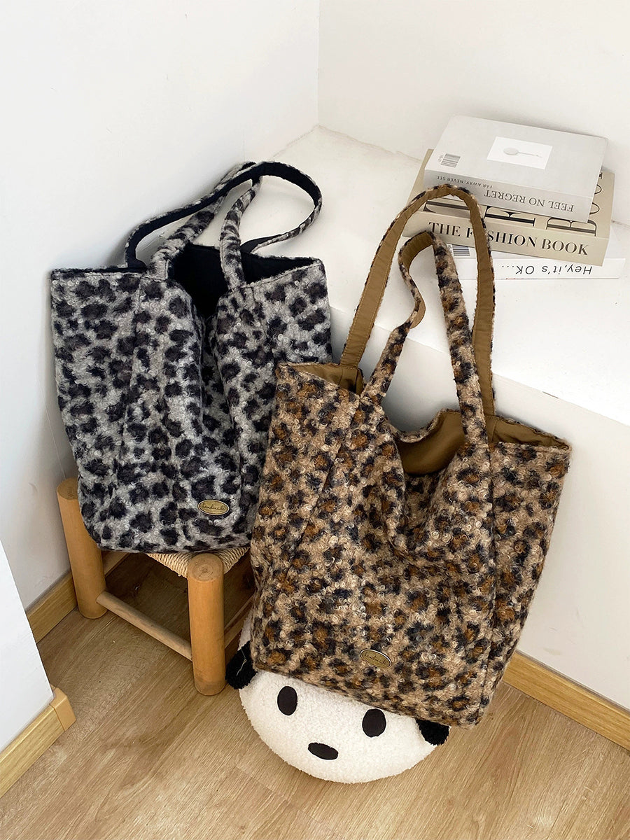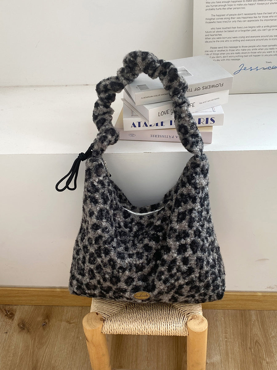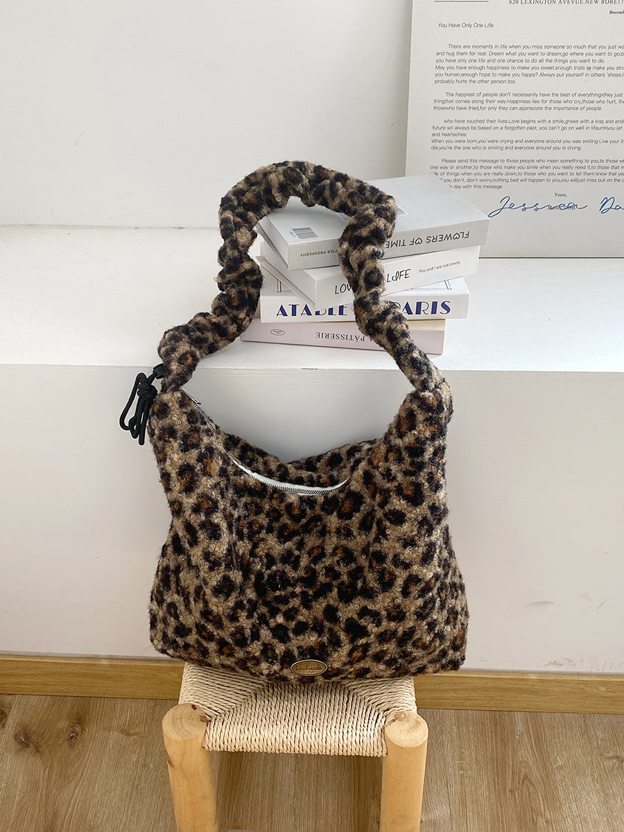 Women Winter Artsy Leopard Print Fleece Shoulder Bag