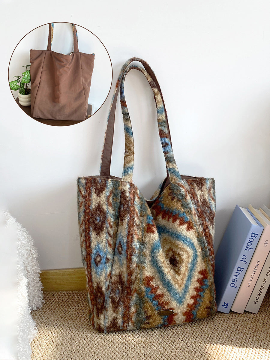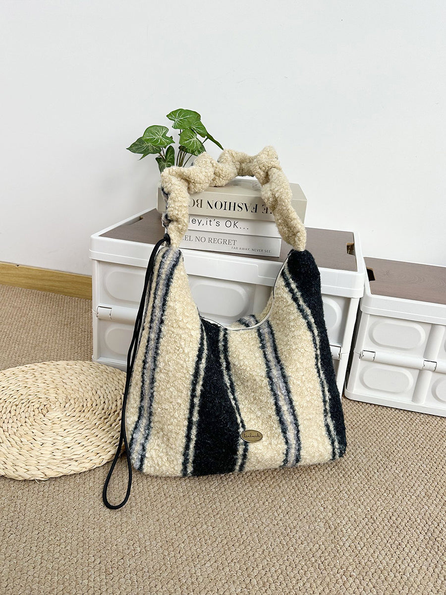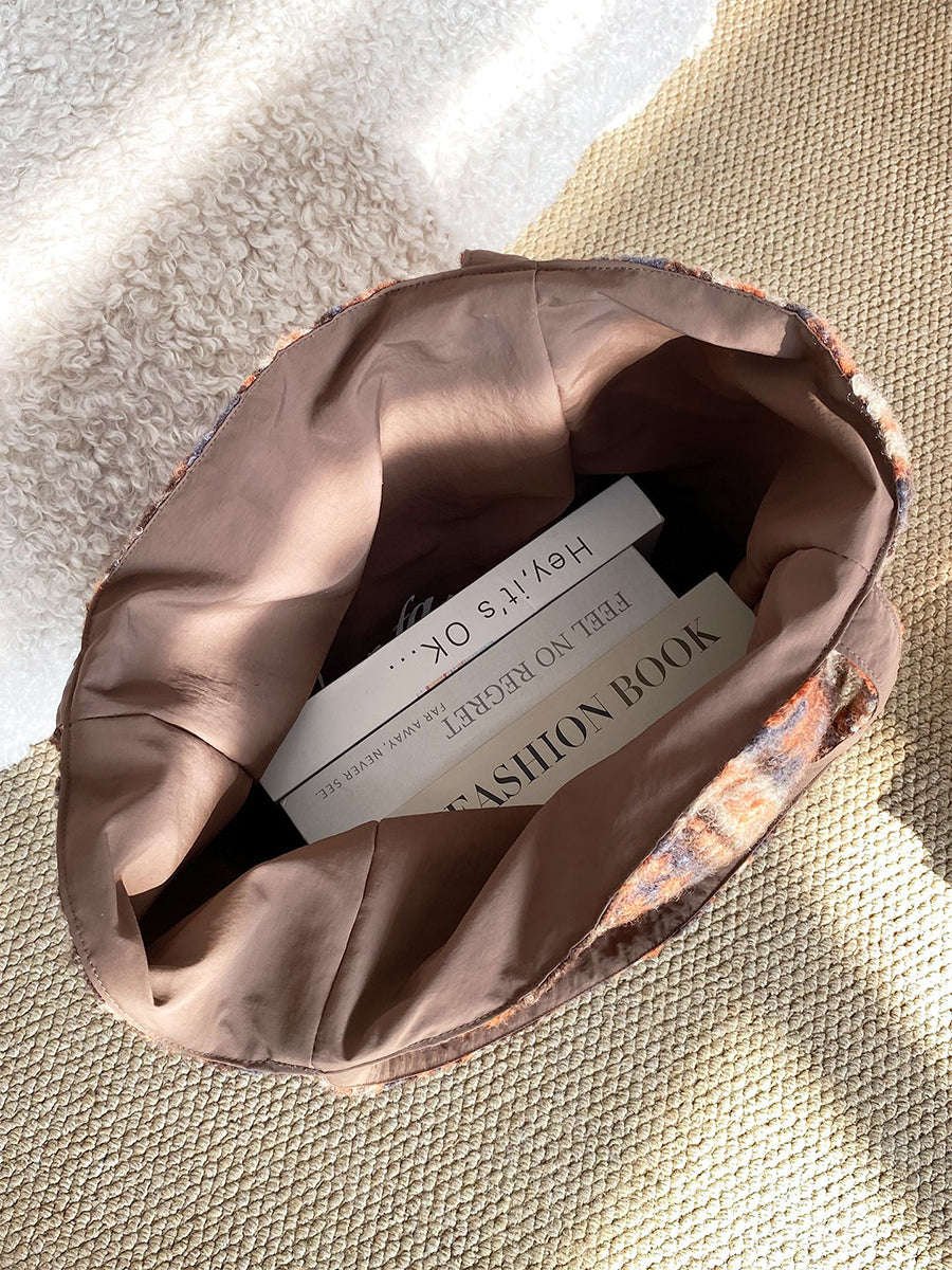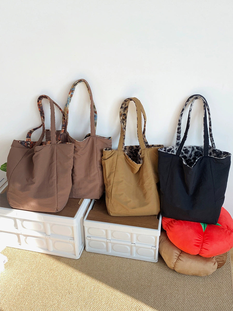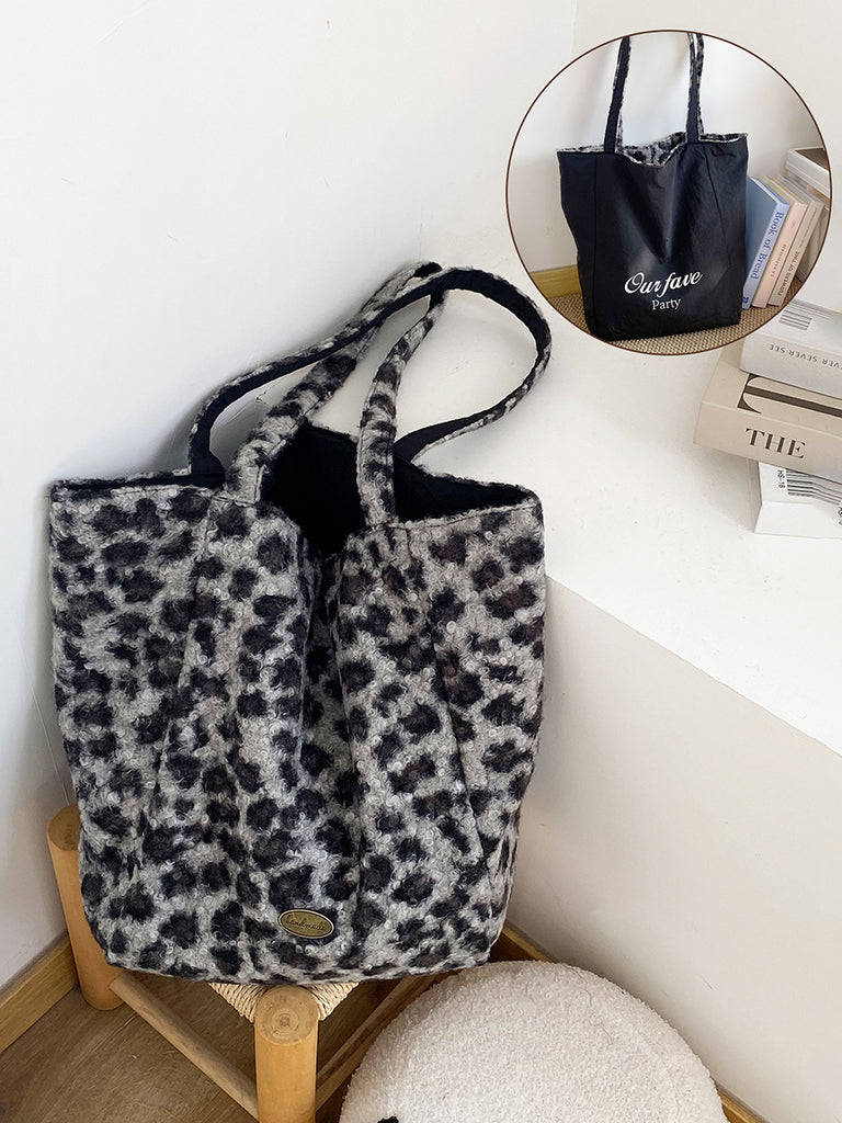 Women Winter Artsy Leopard Print Fleece Shoulder Bag