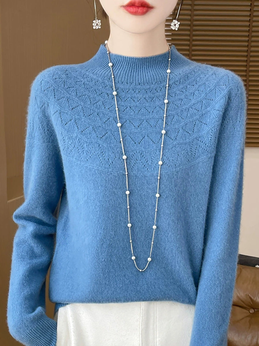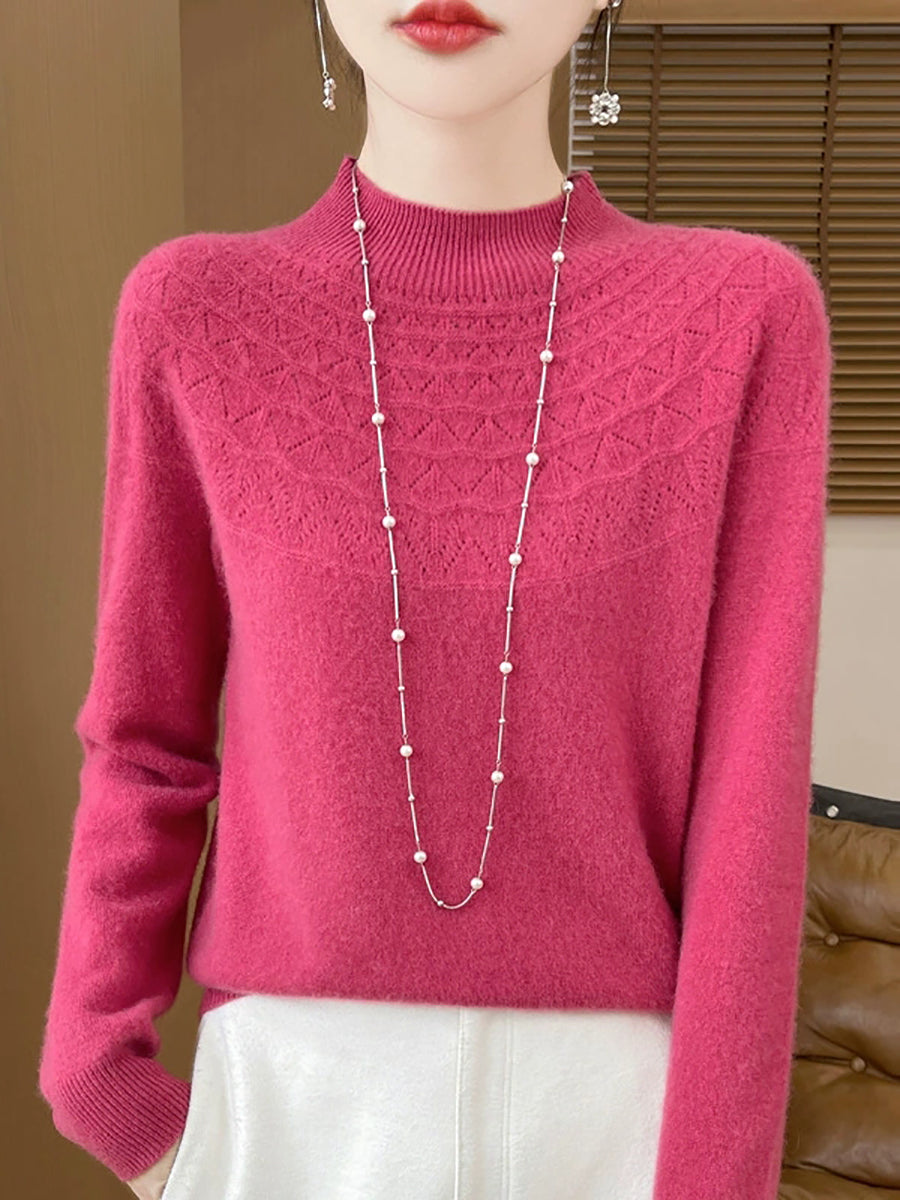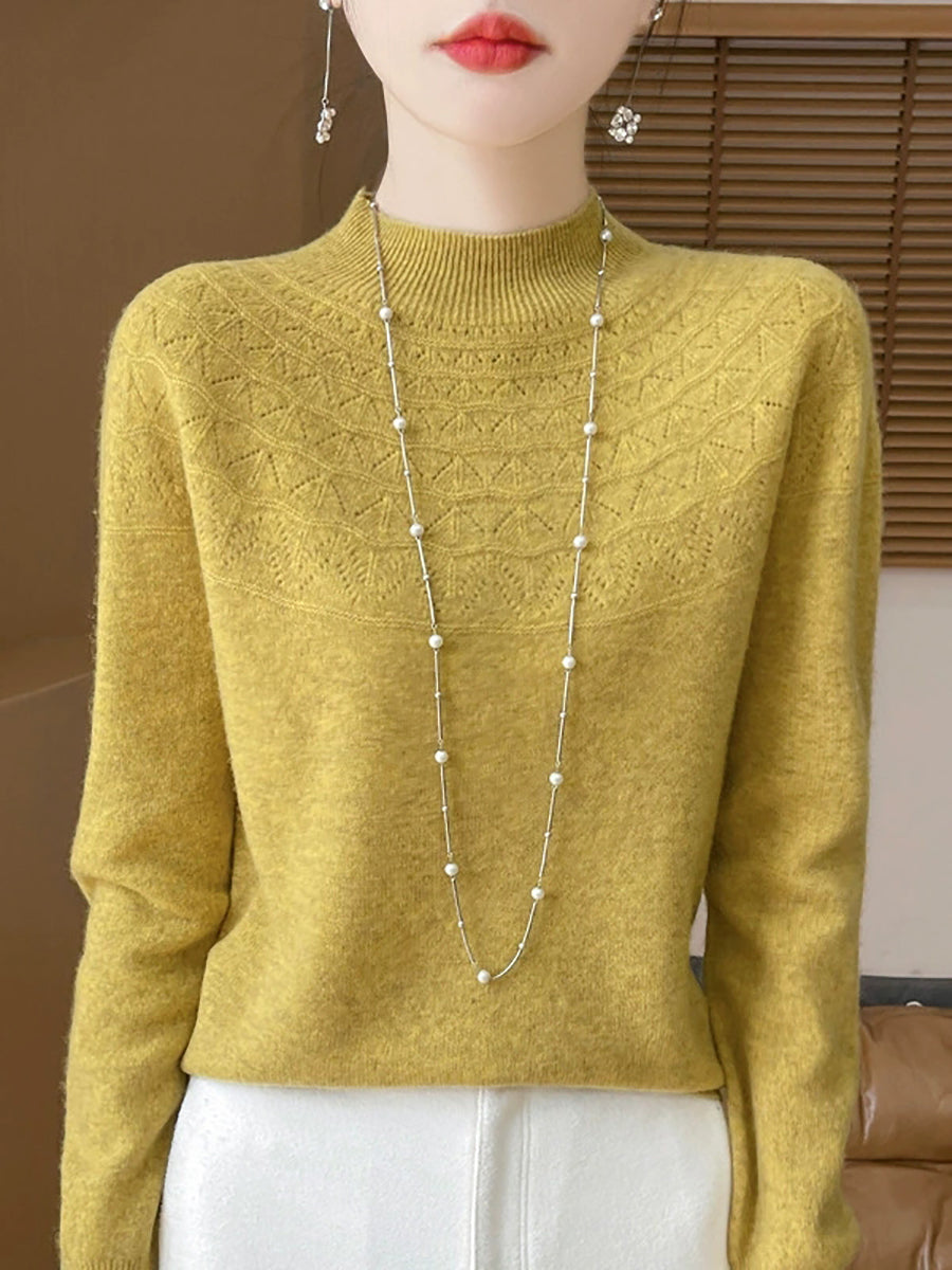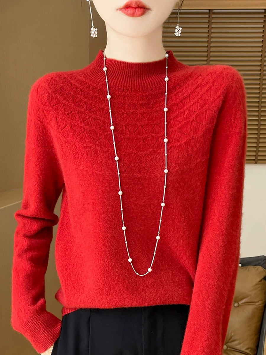 Women Winter Artsy Pure Color Half-Turtleneck Sweater