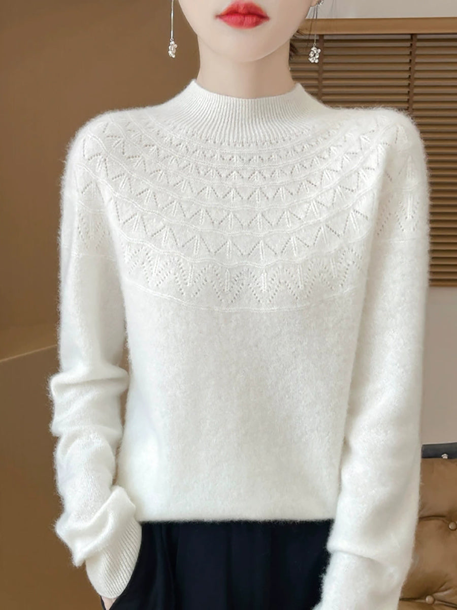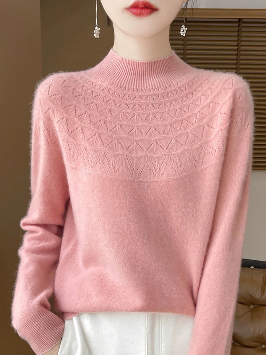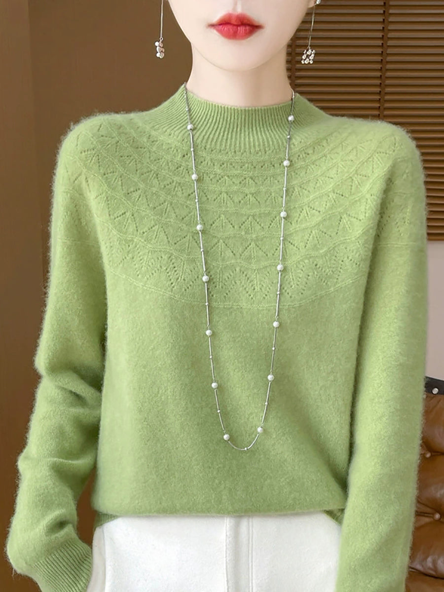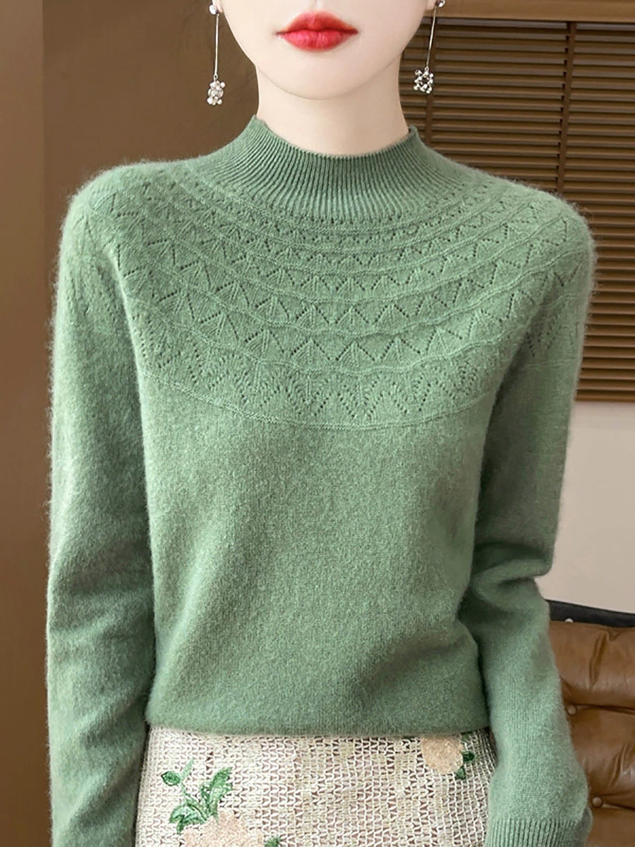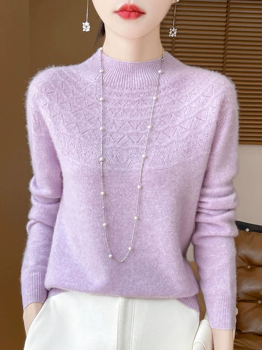 Women Winter Artsy Pure Color Half-Turtleneck Sweater