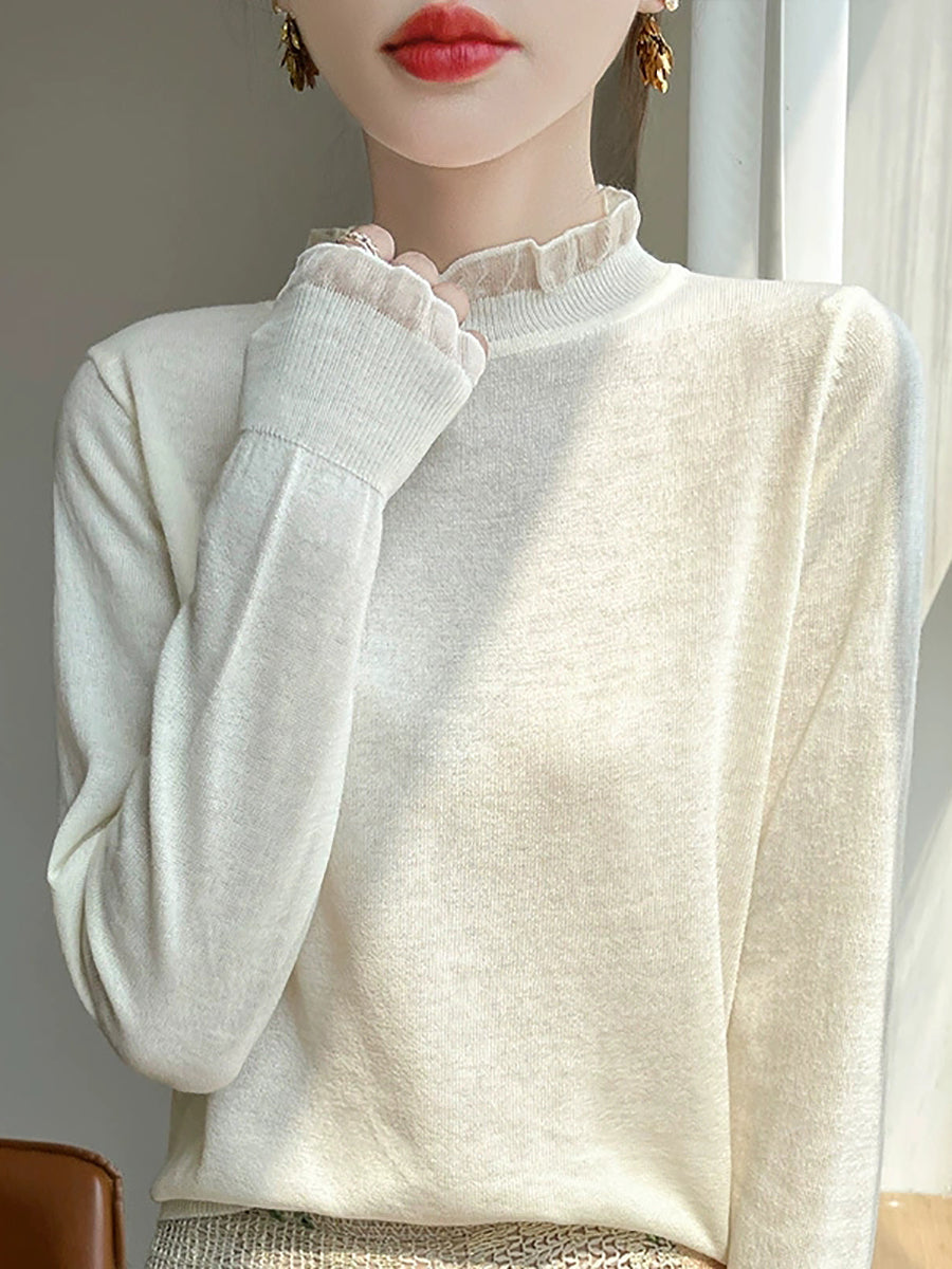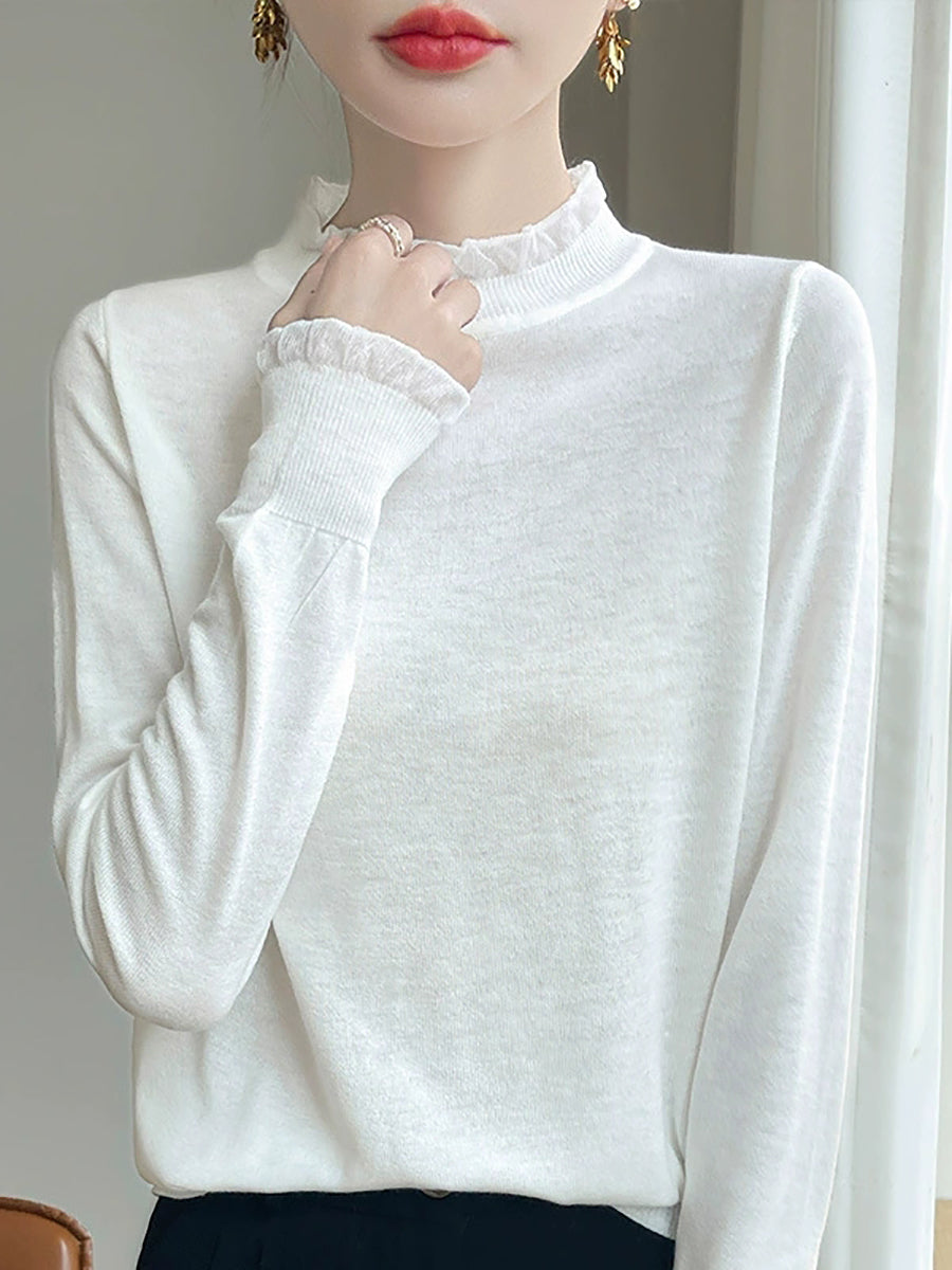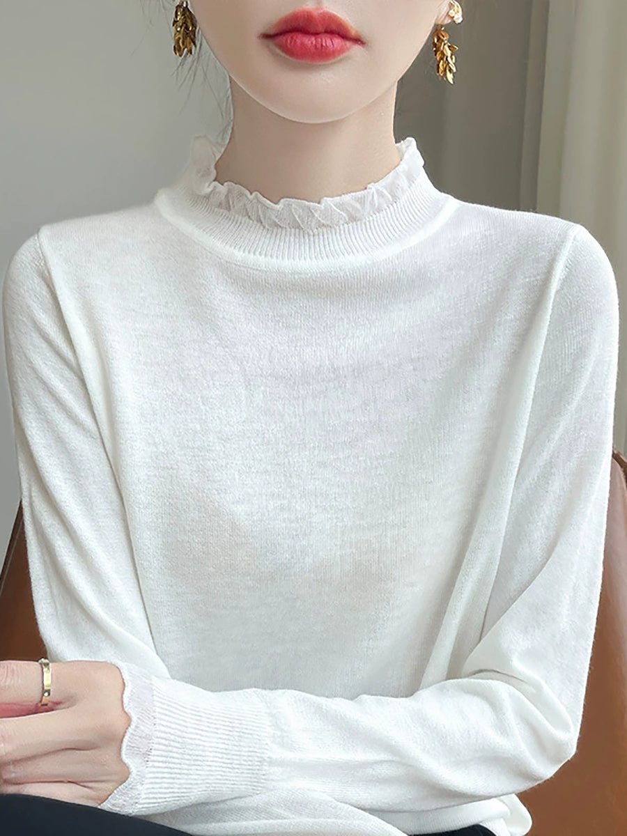 Women Winter Artsy Pure Color Lace Collar Blouse