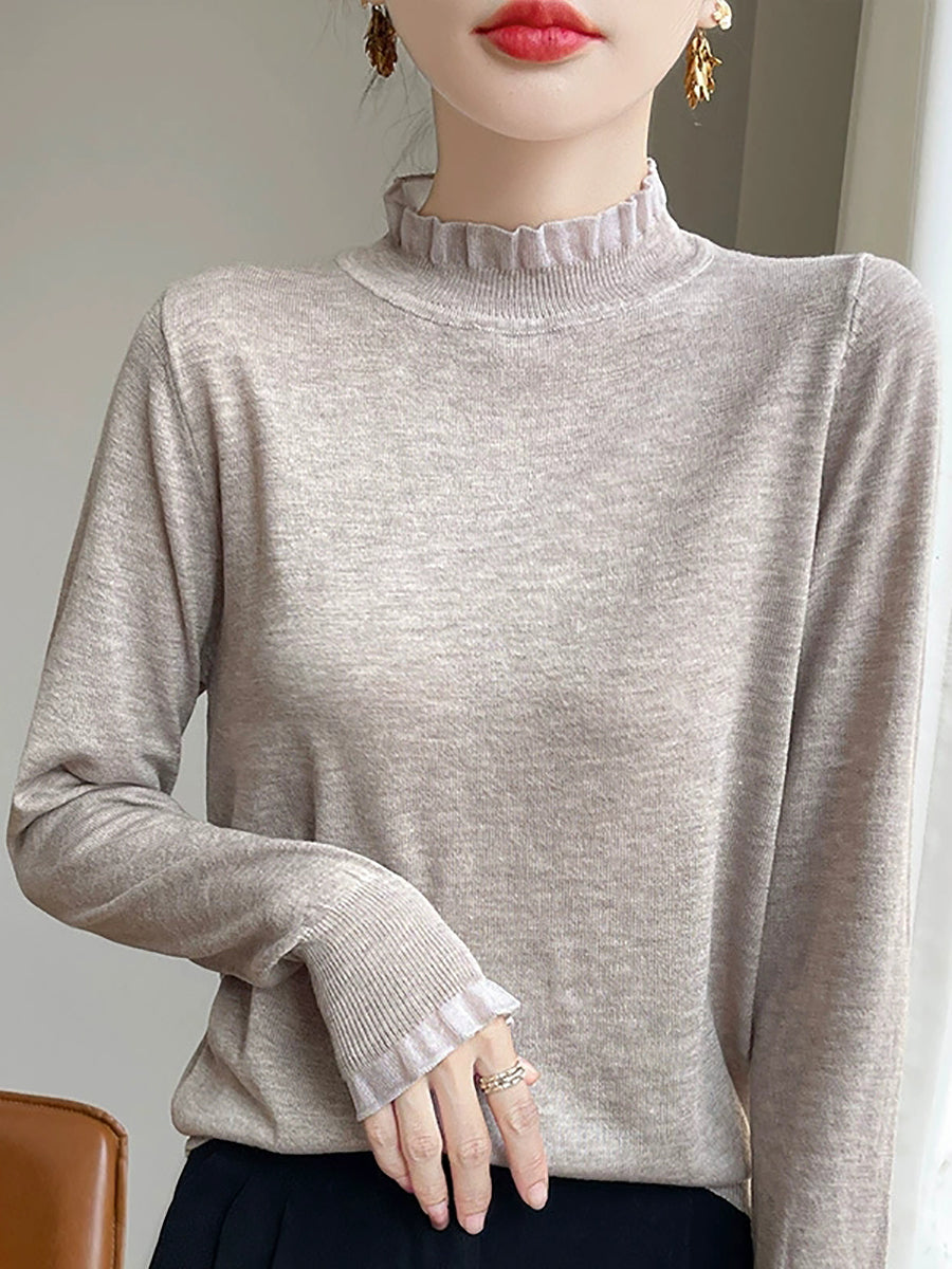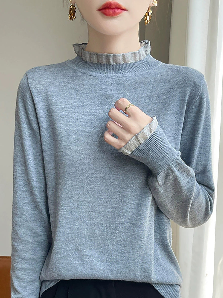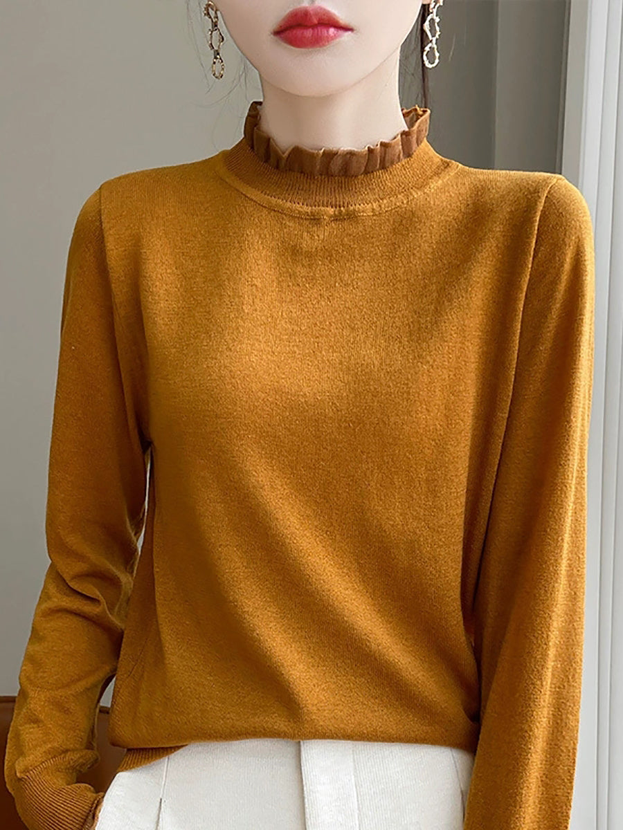Women Winter Artsy Pure Color Lace Collar Blouse