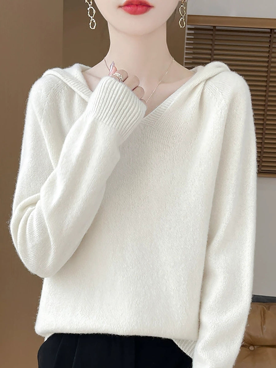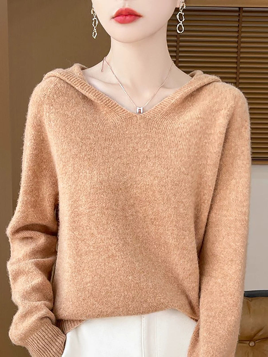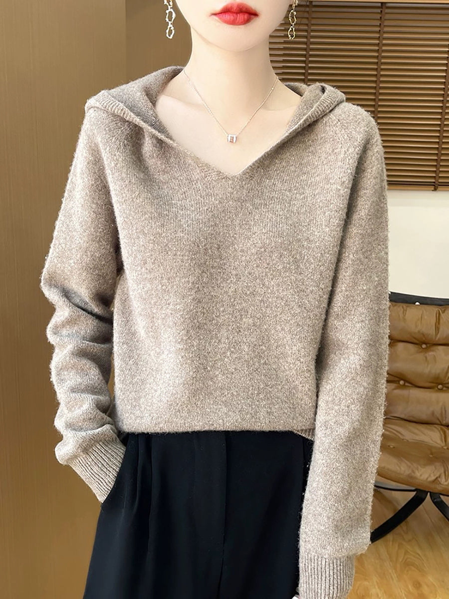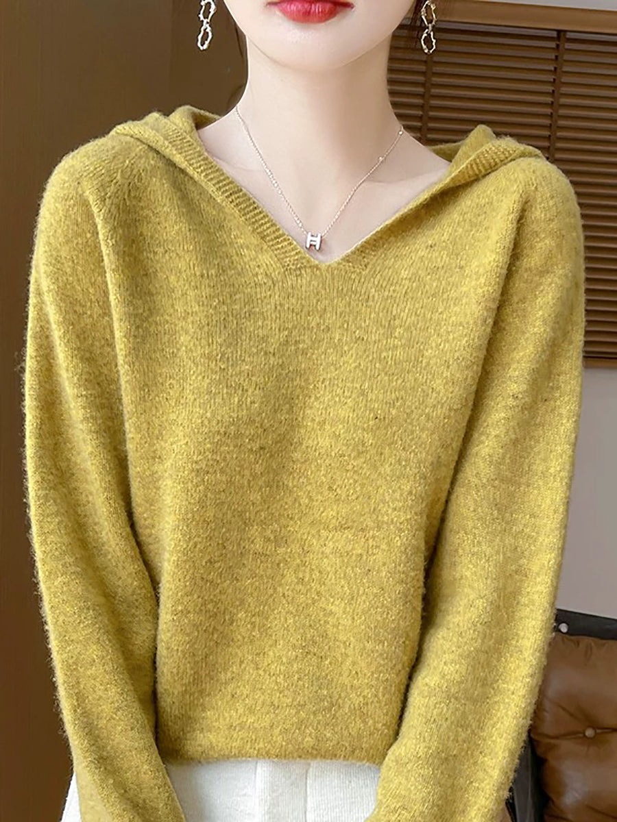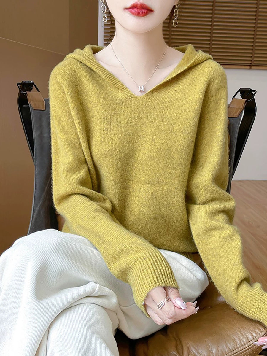 Women Winter Casual Hooded Pure Color Sweater