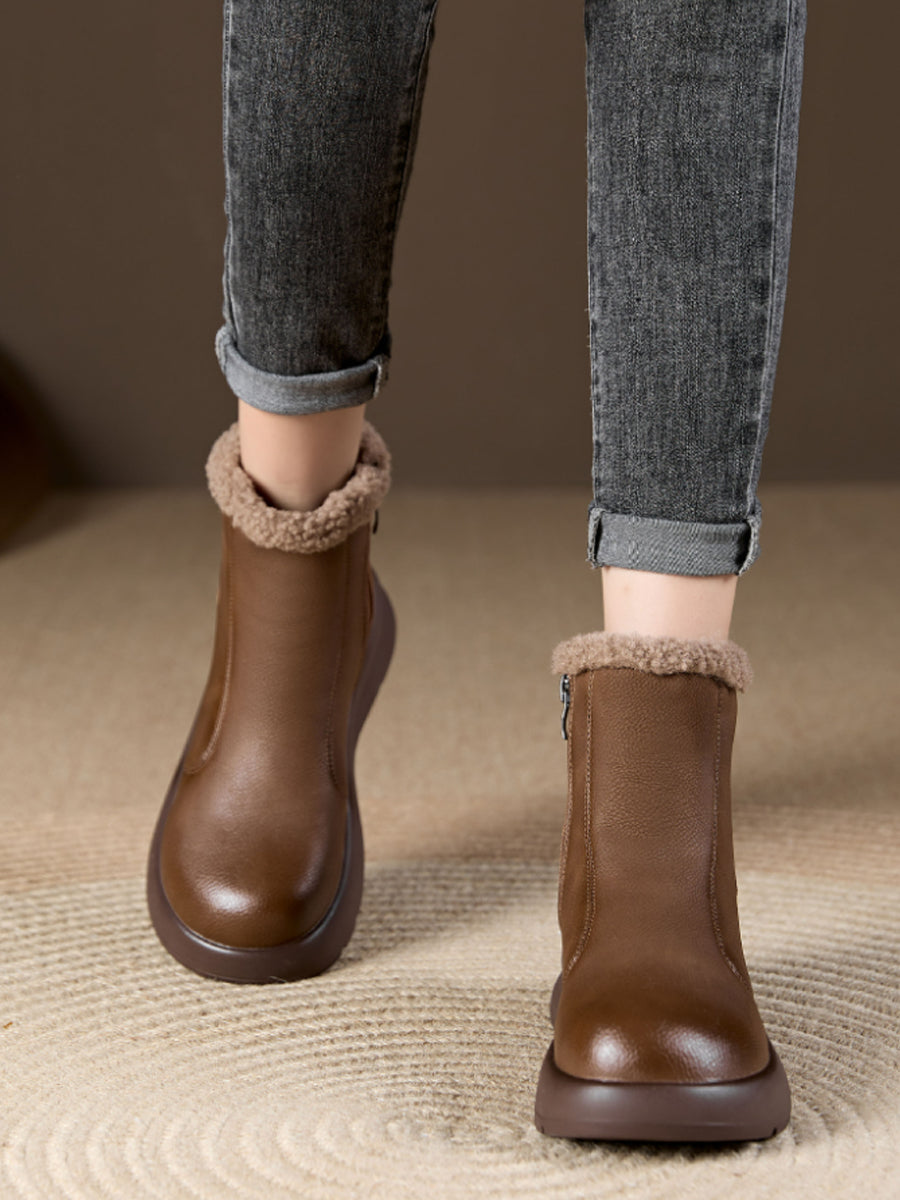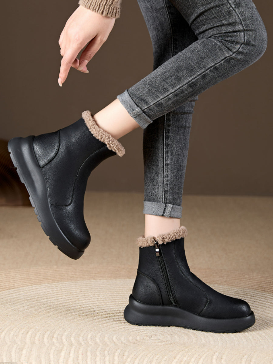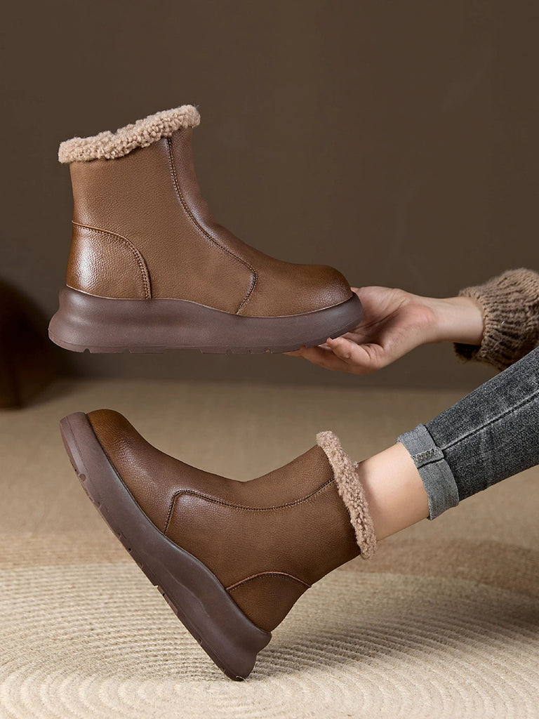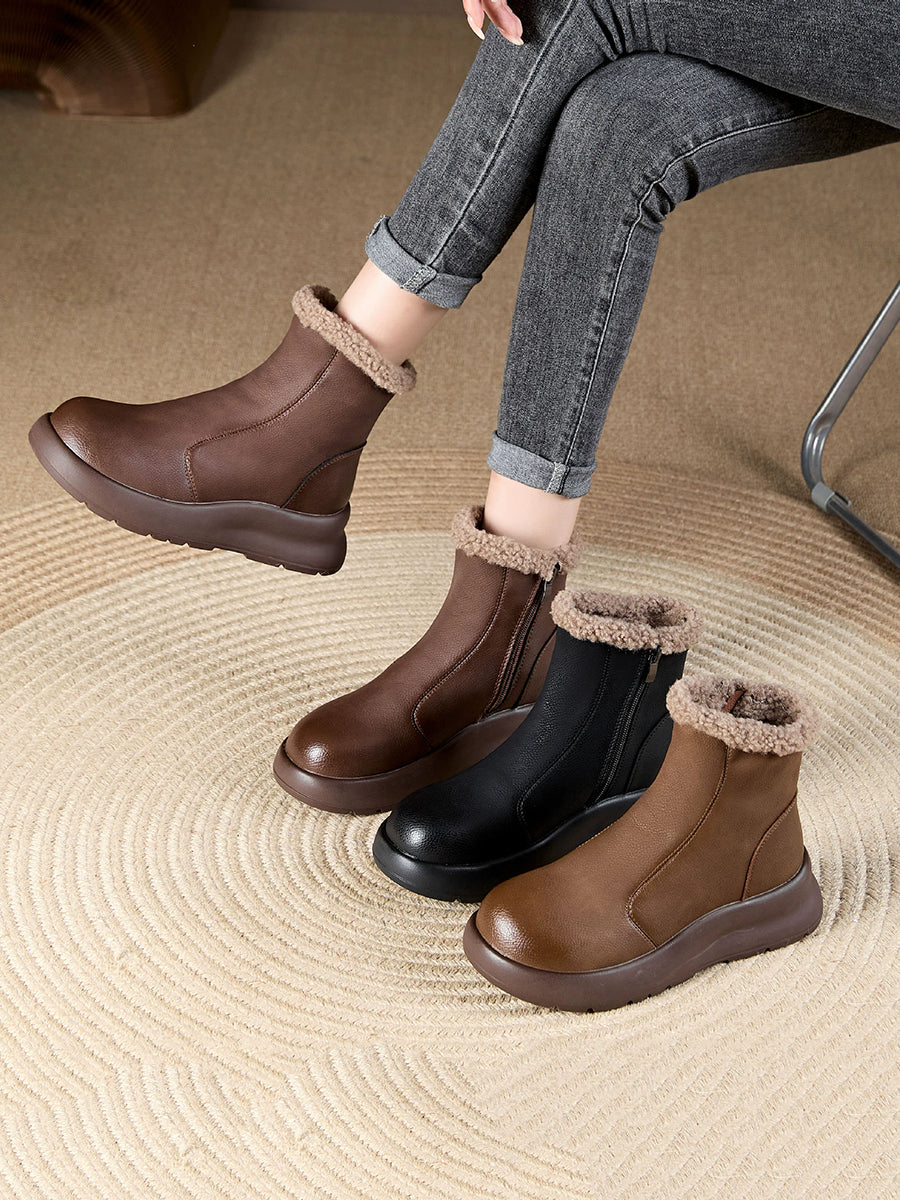 Women Winter Casual Soft Leather Fleece-lined Ankle Boots