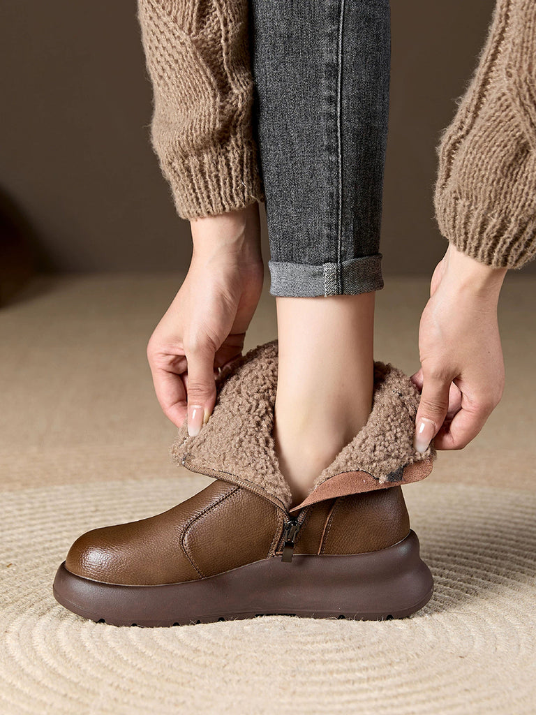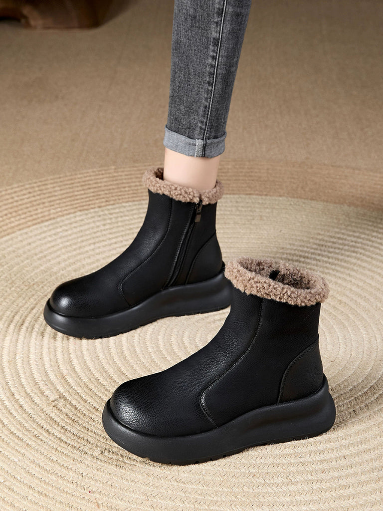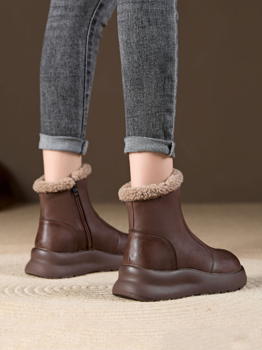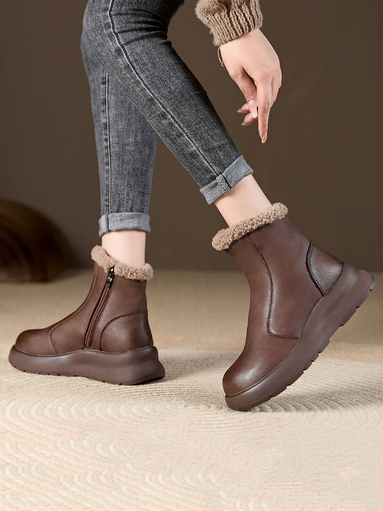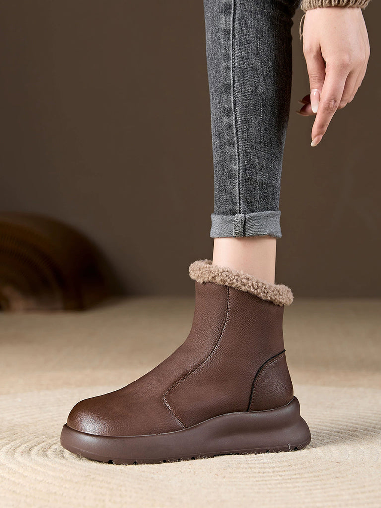 Women Winter Casual Soft Leather Fleece-lined Ankle Boots