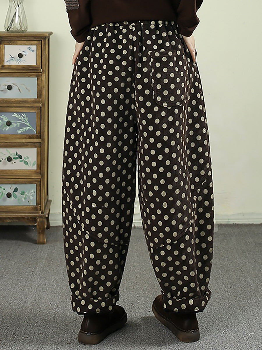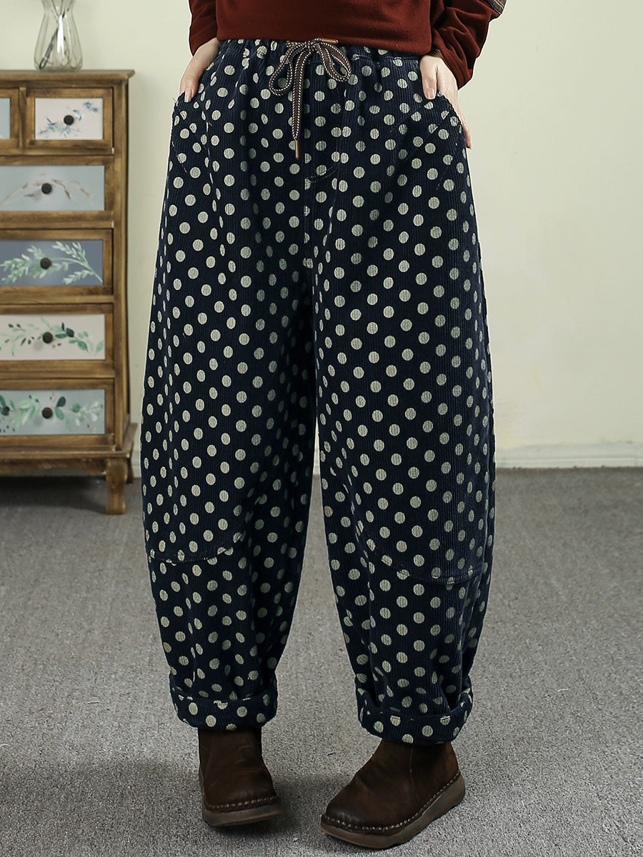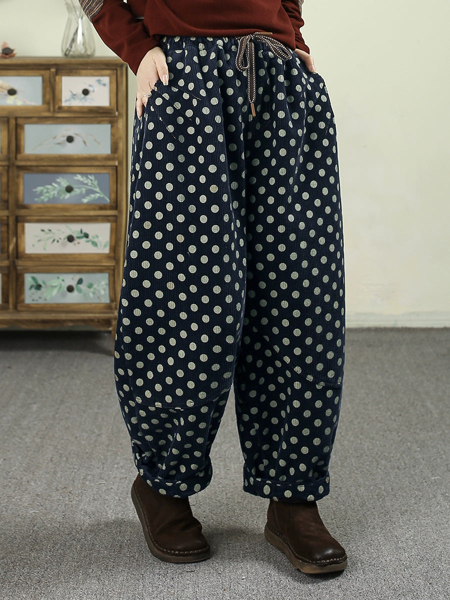 Women Winter Dot Corduroy Fleece-lined Harem Pants