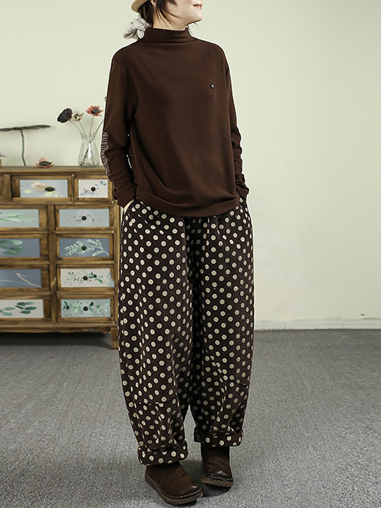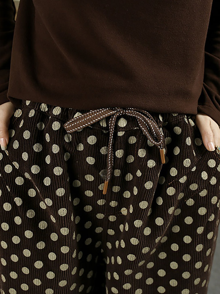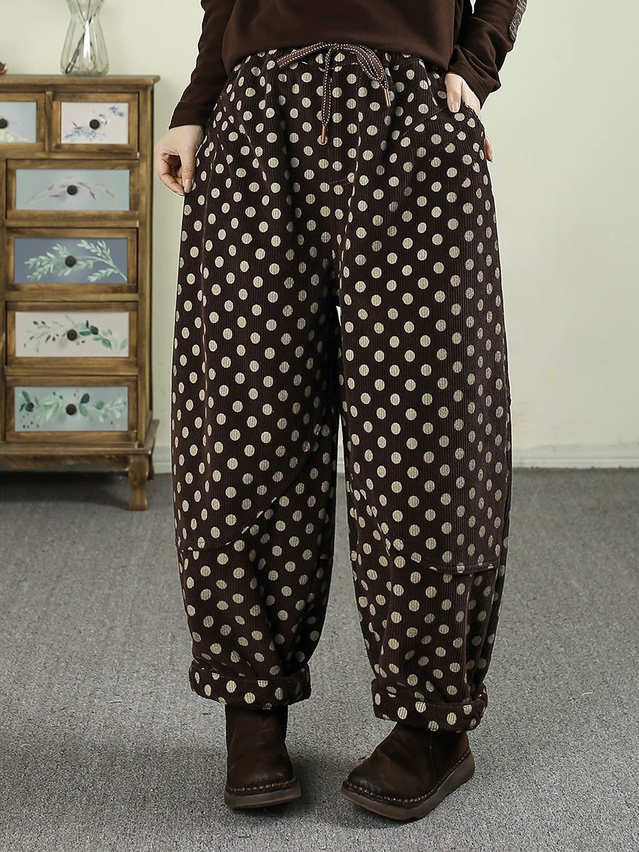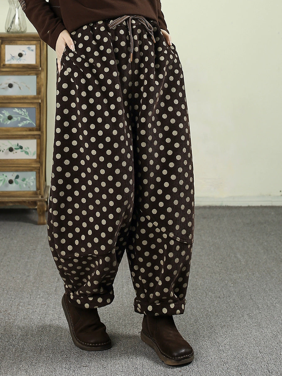 Women Winter Dot Corduroy Fleece-lined Harem Pants