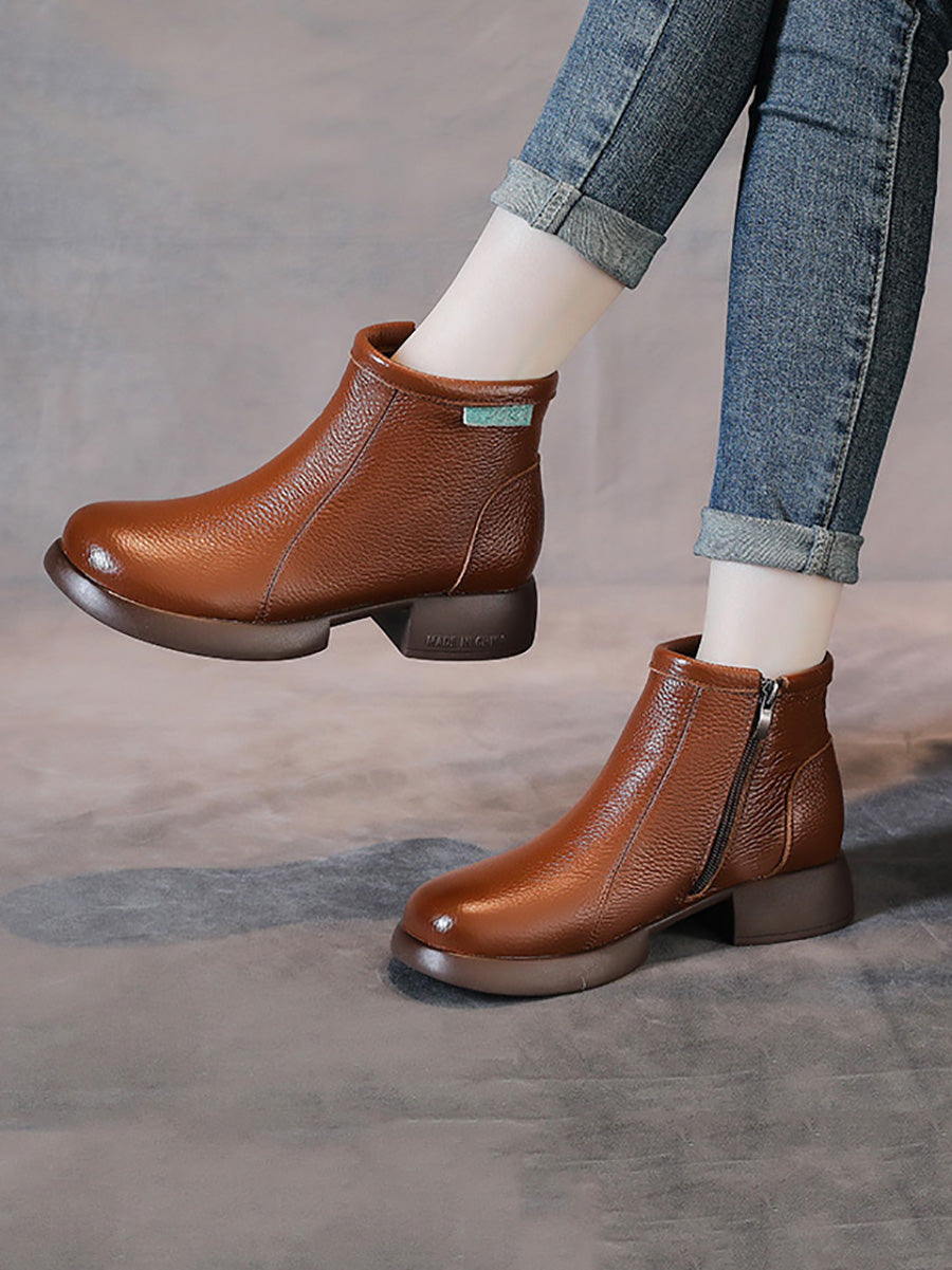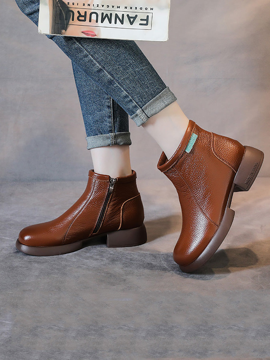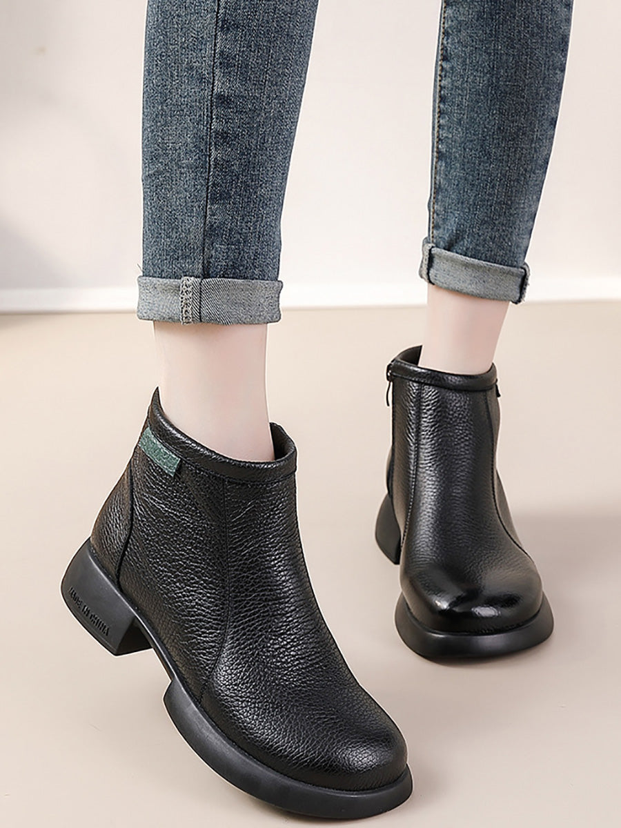 Women Winter Elegant Genuine Leather Low Heel Boots