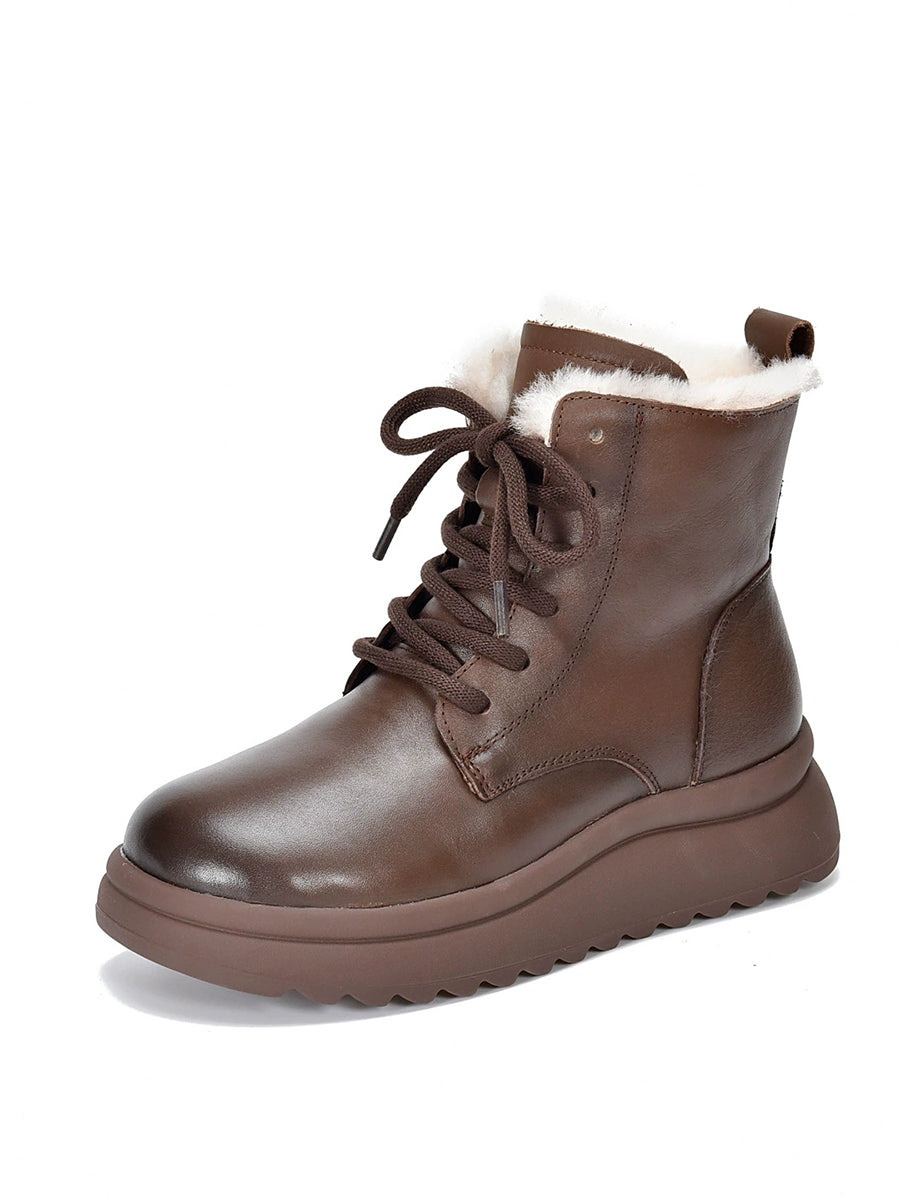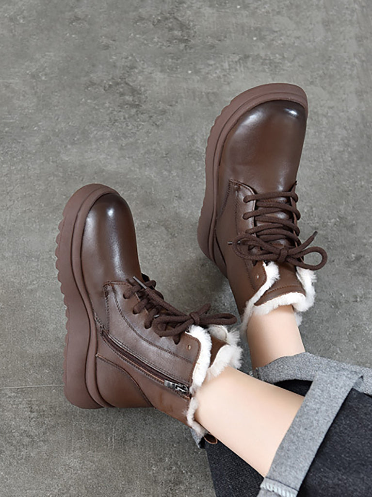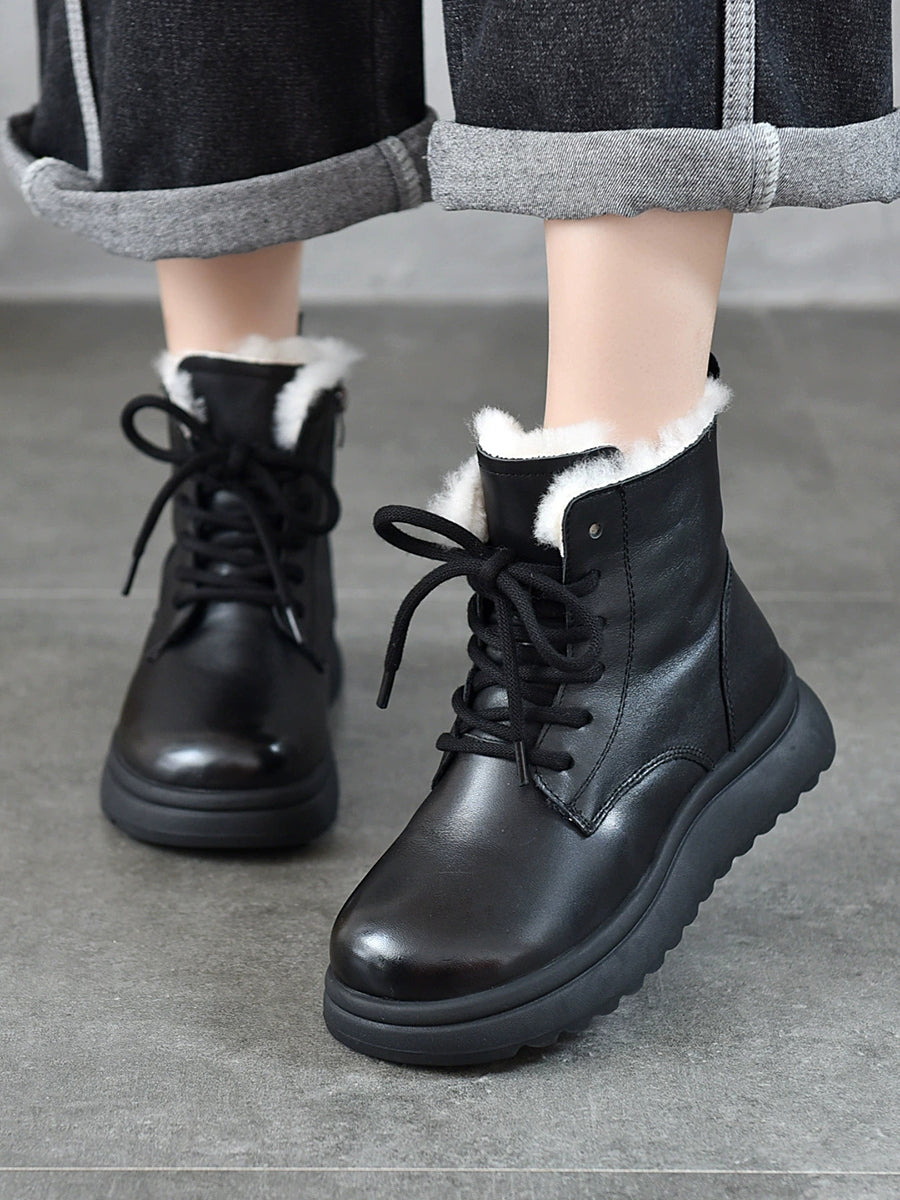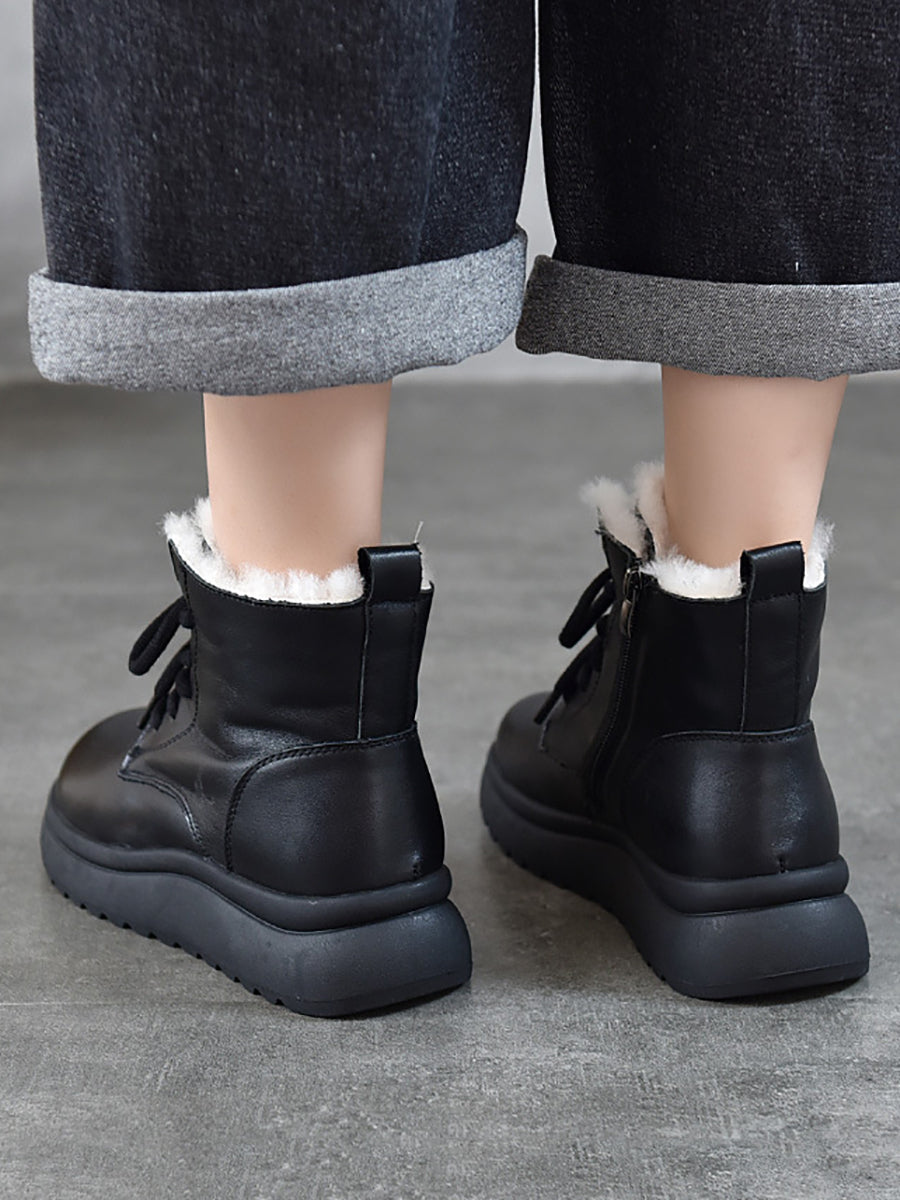Women Winter Genuine Leather Fleece-lined Ankle Boots