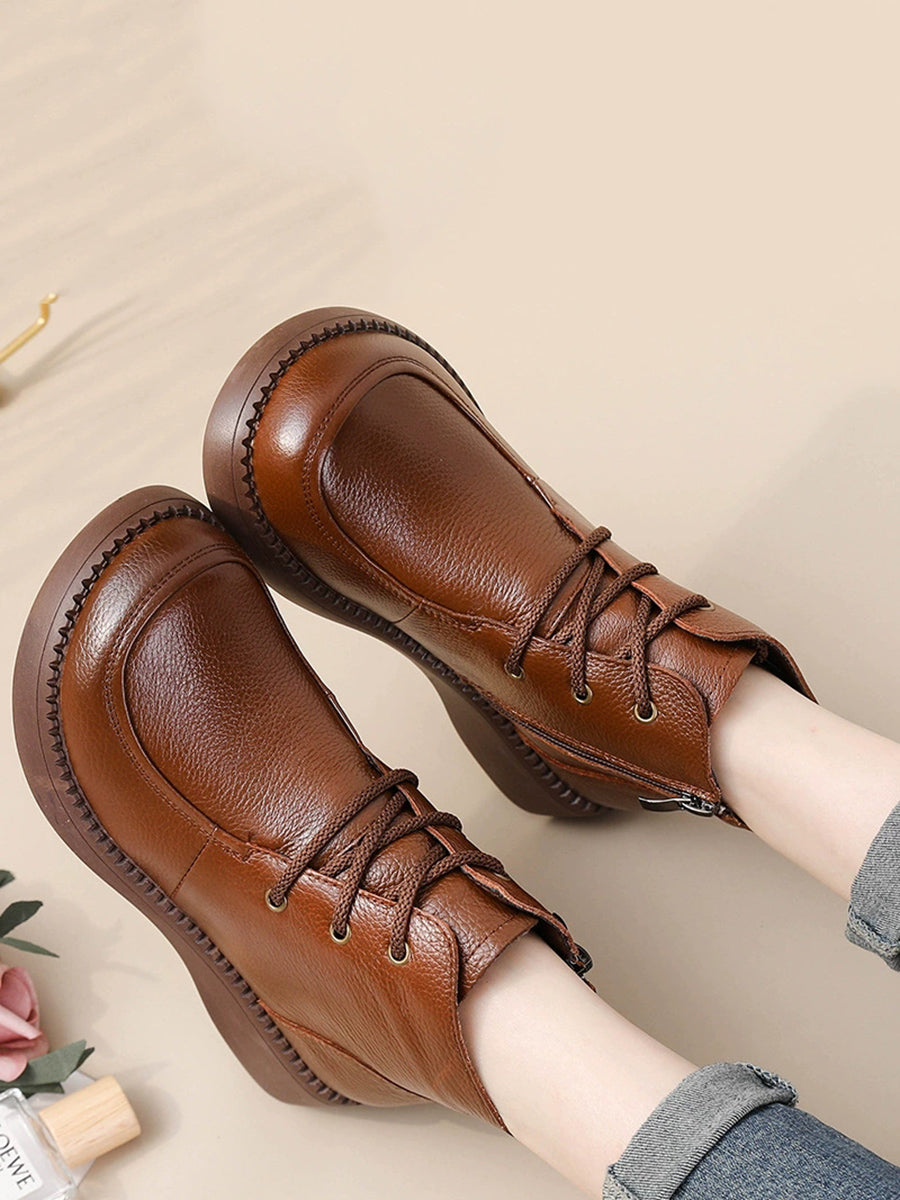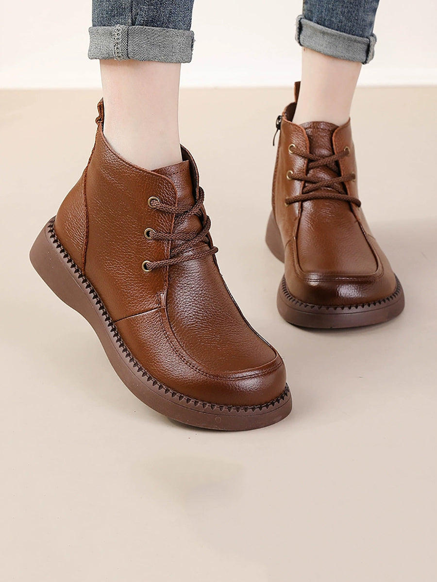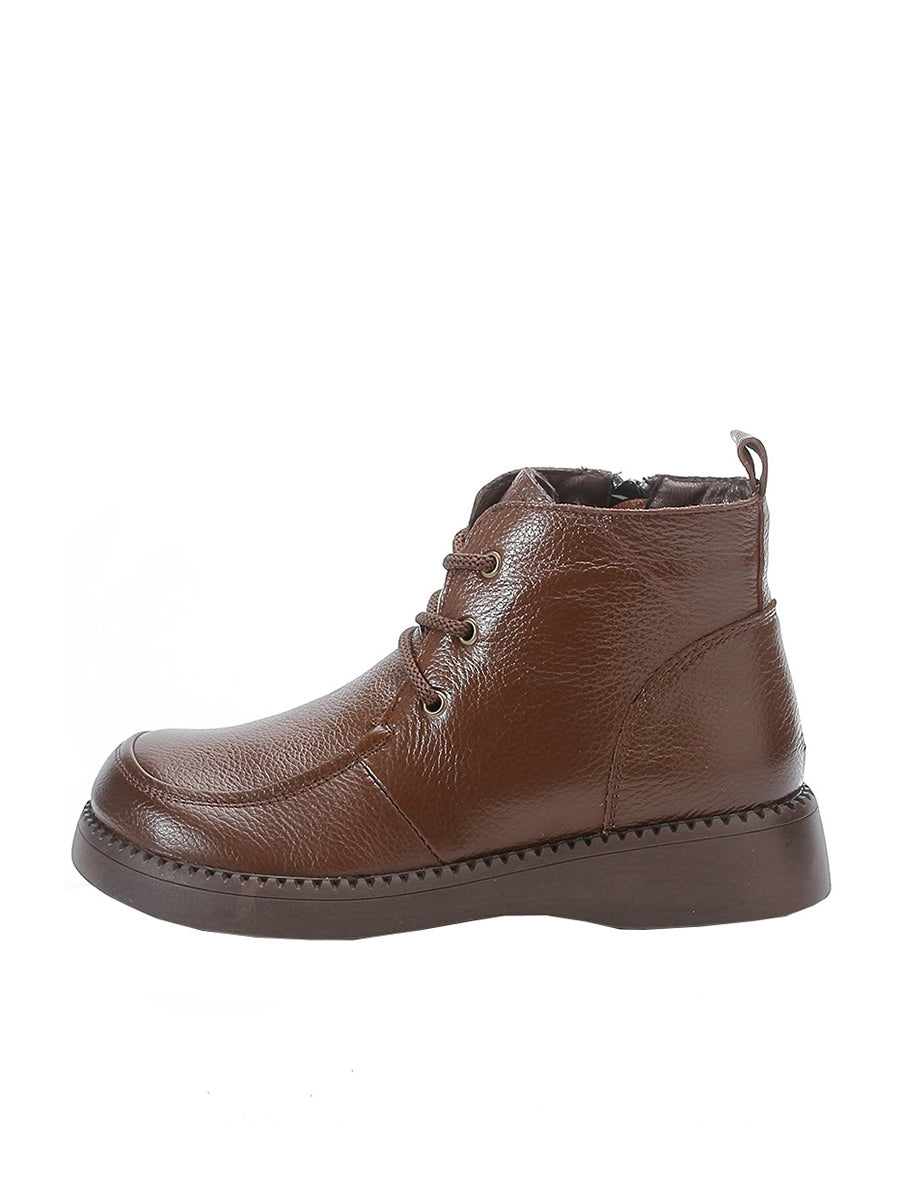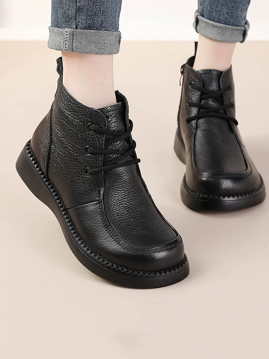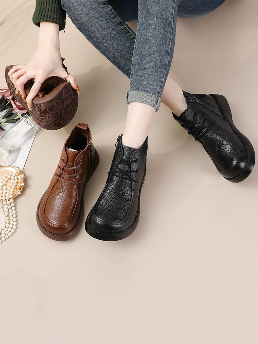 Women Winter Genuine Leather Fleece-lined Ankle Boots