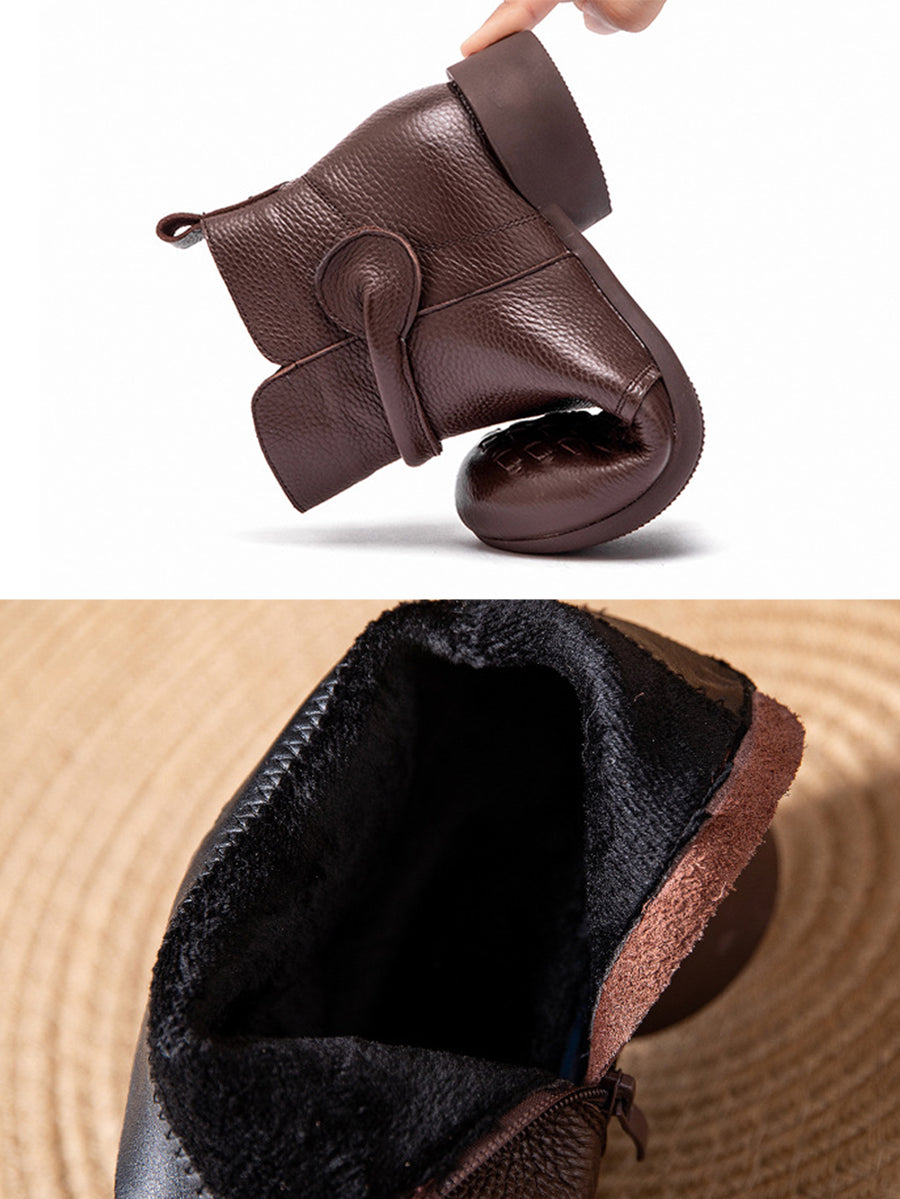 Women Winter Genuine Leather Fleece-lined Low Heel Boots