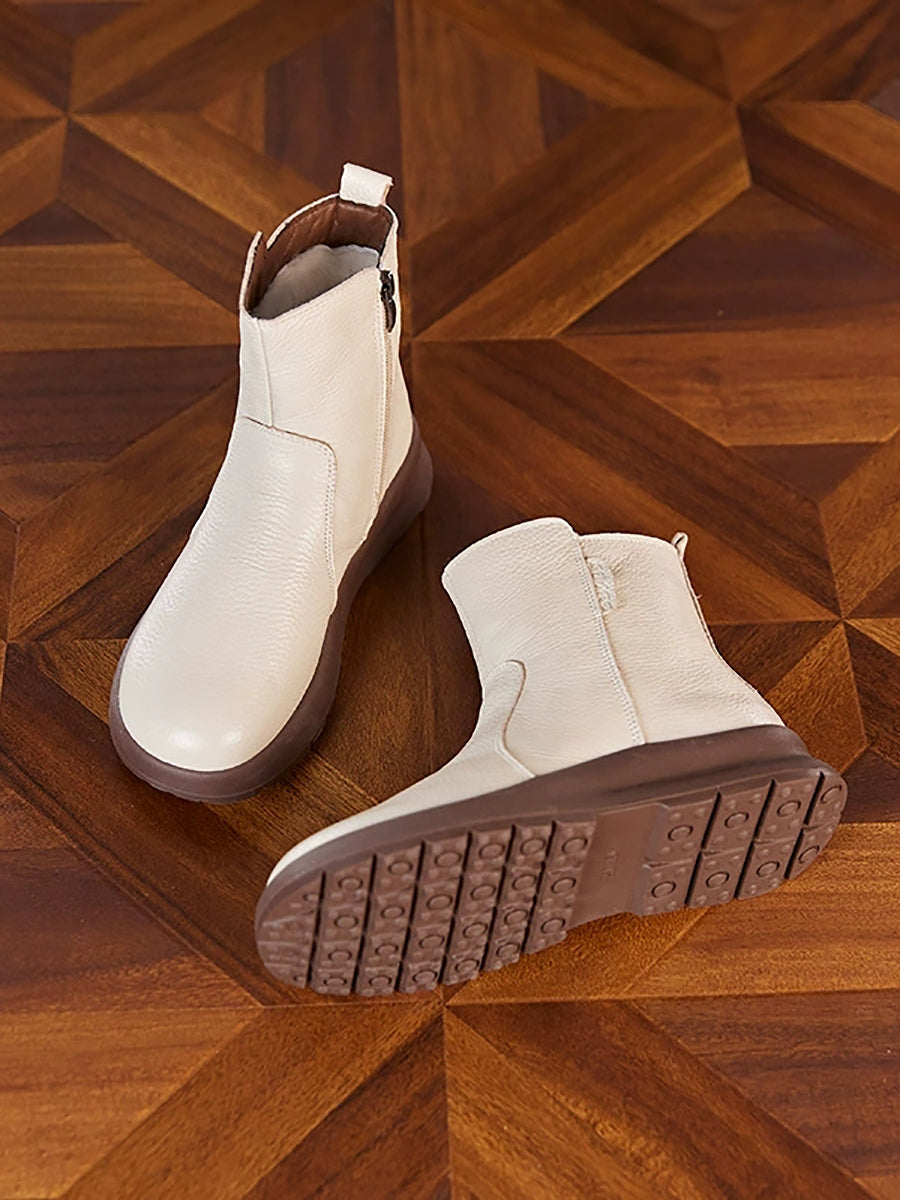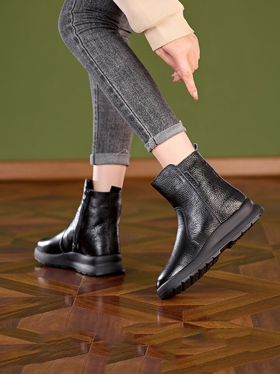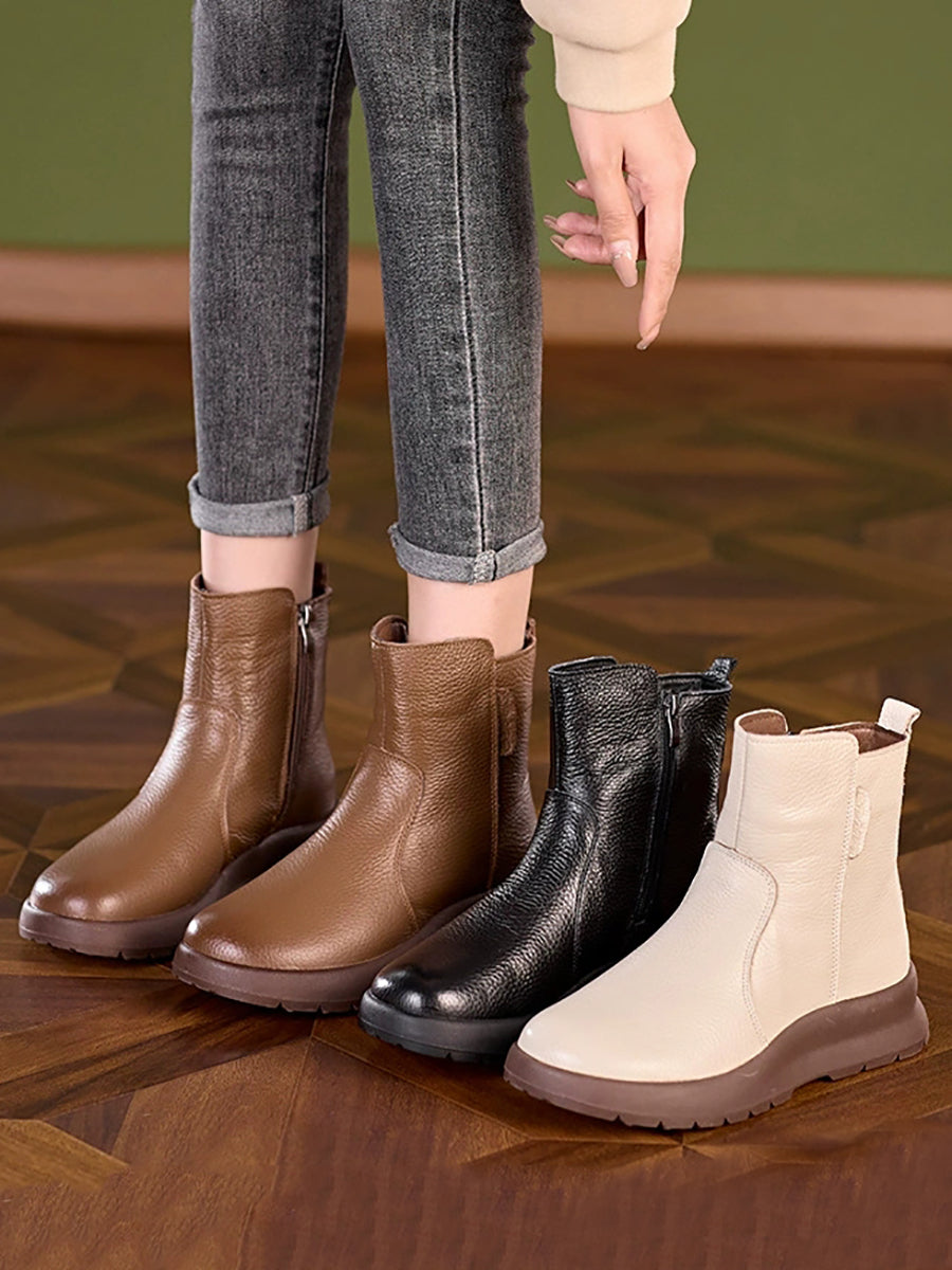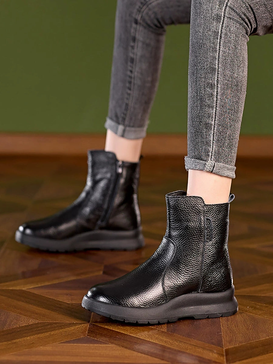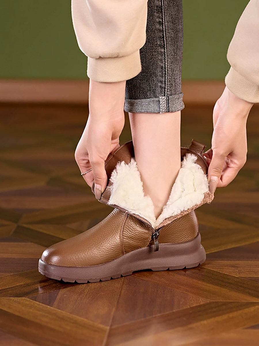 Women Winter Genuine Leather Fleece-lined Martin Boots