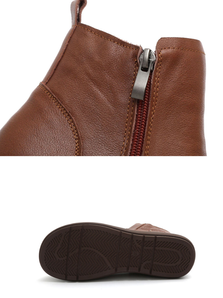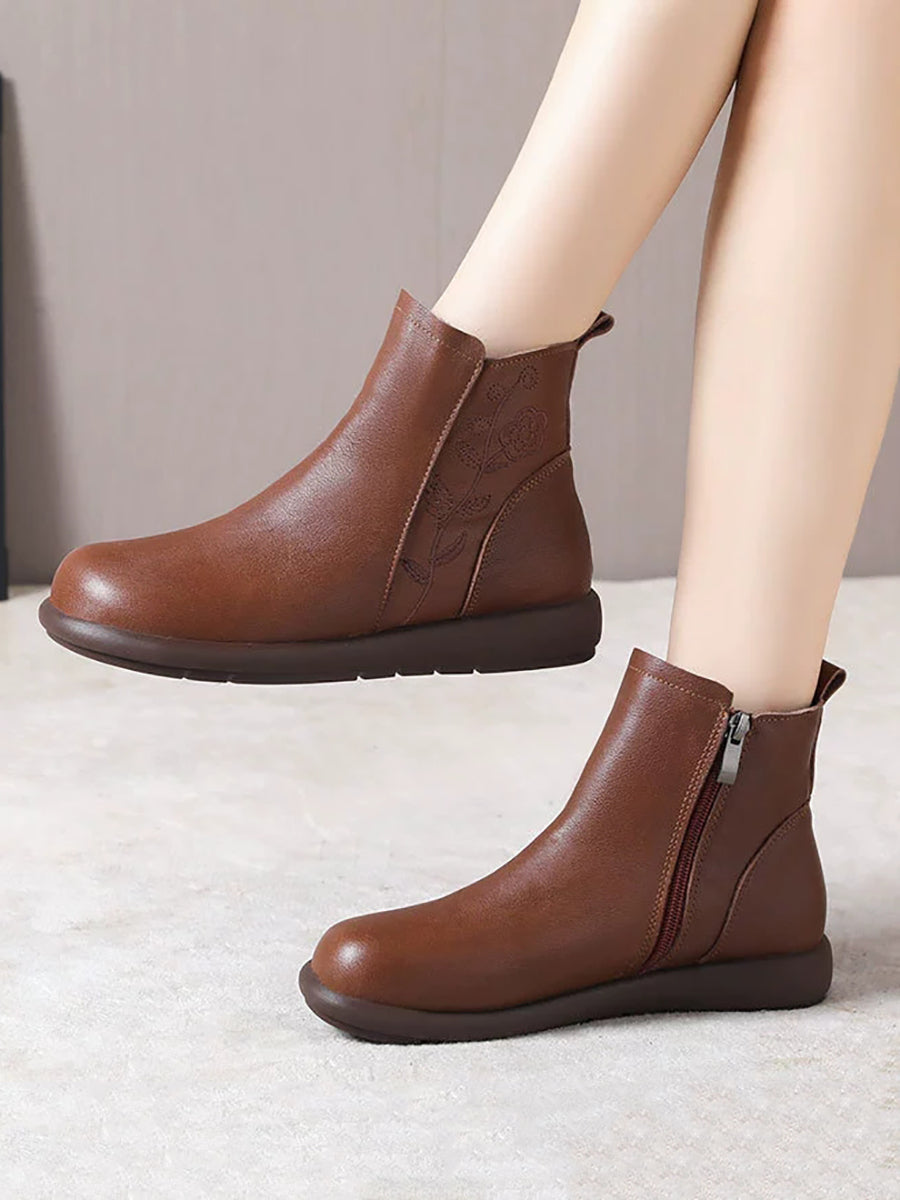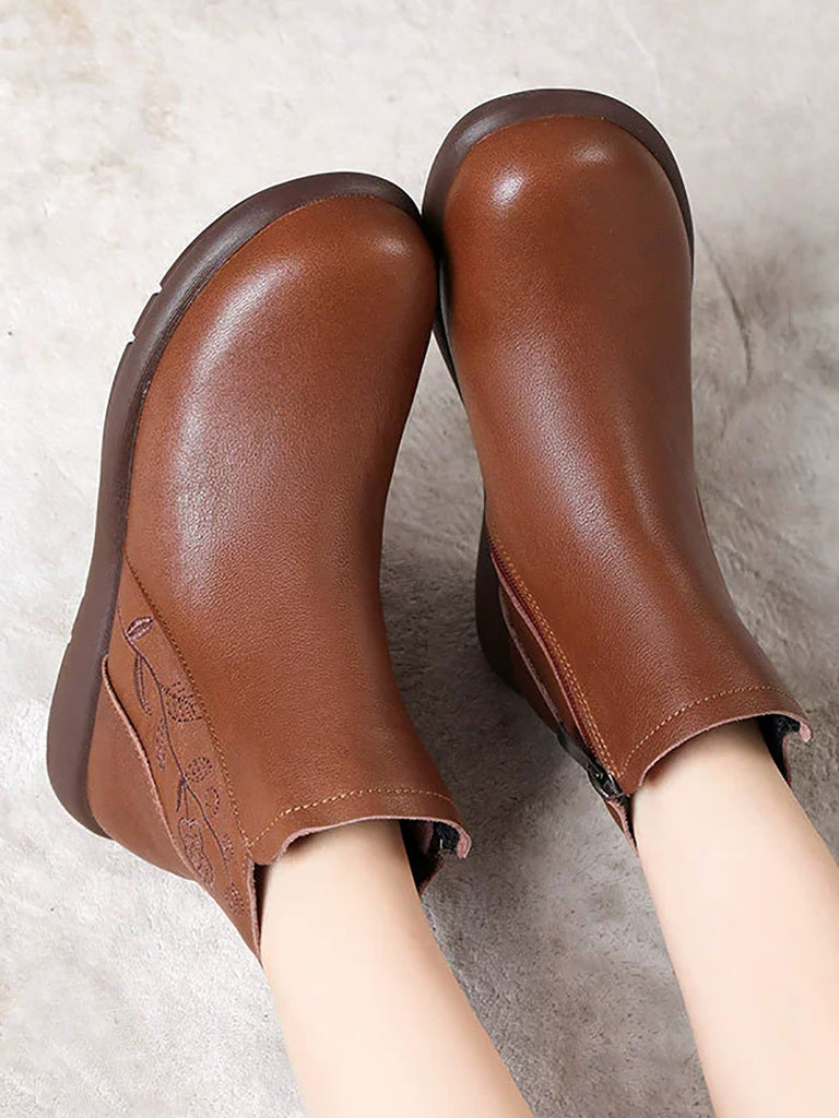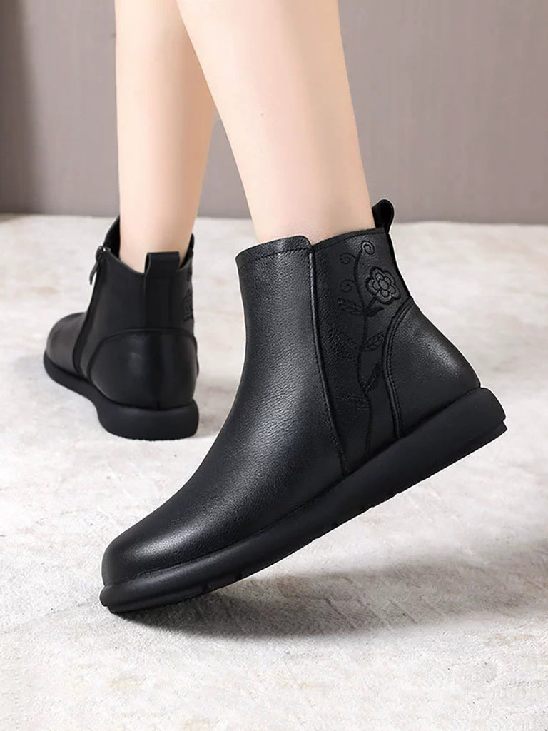 Women Winter Genuine Leather Flower Embossing Boots
