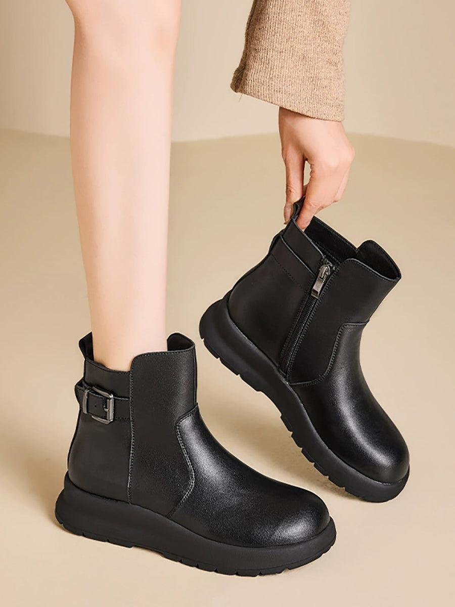 Women Winter Genuine Leather Platform Martin Boots