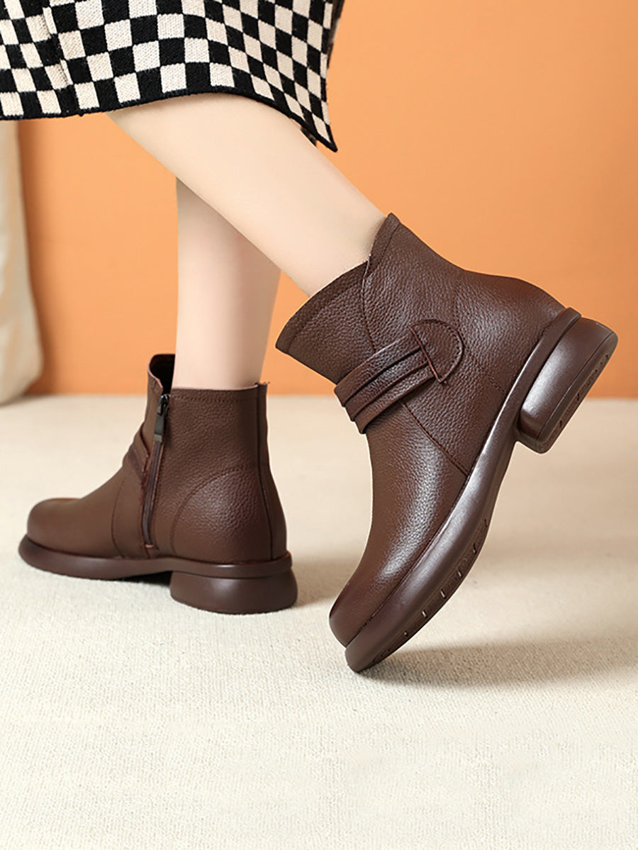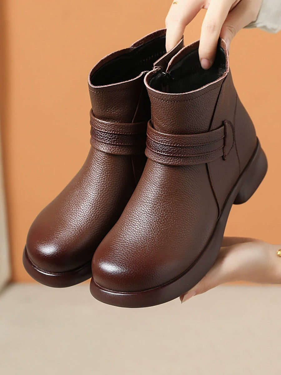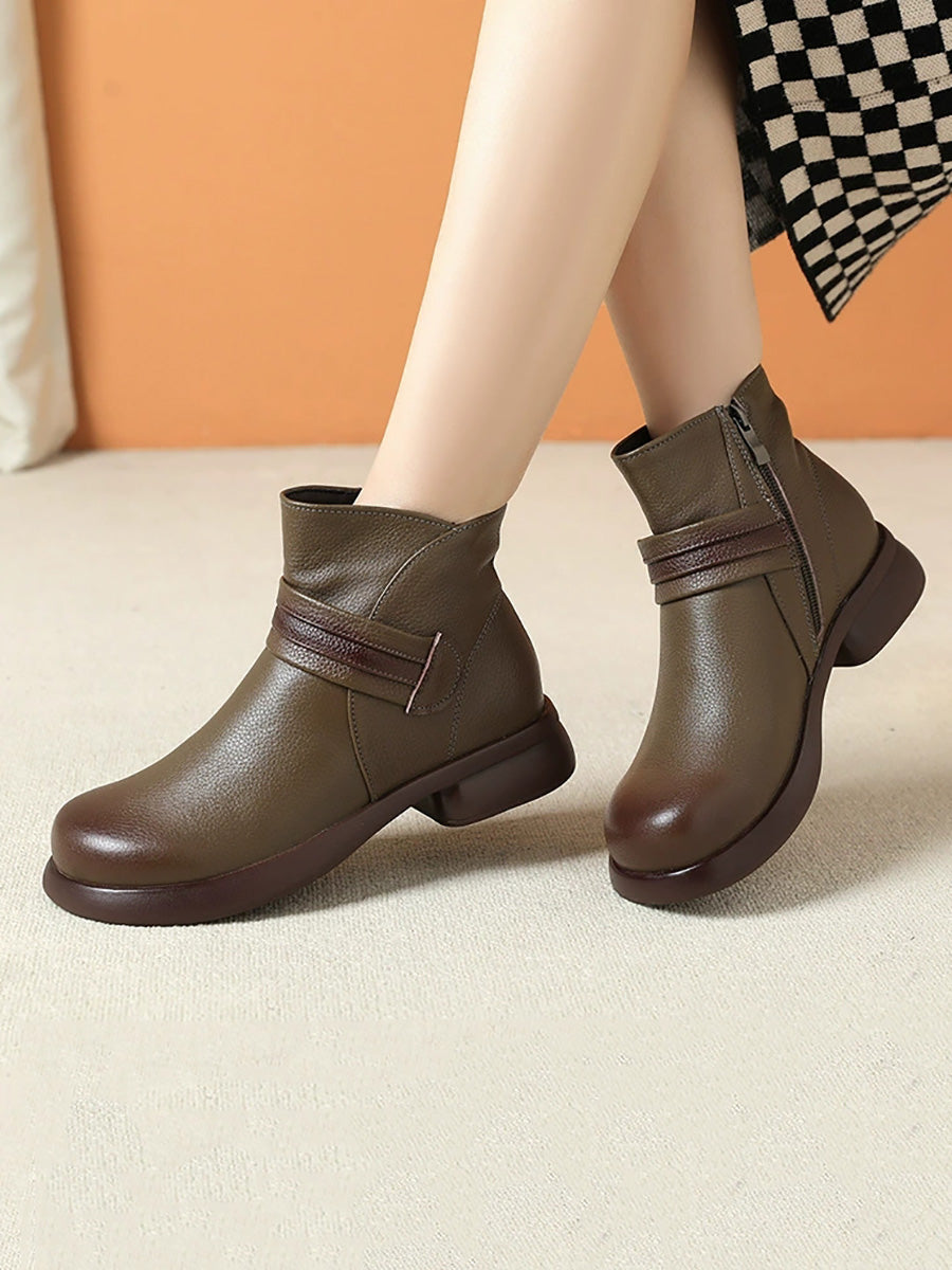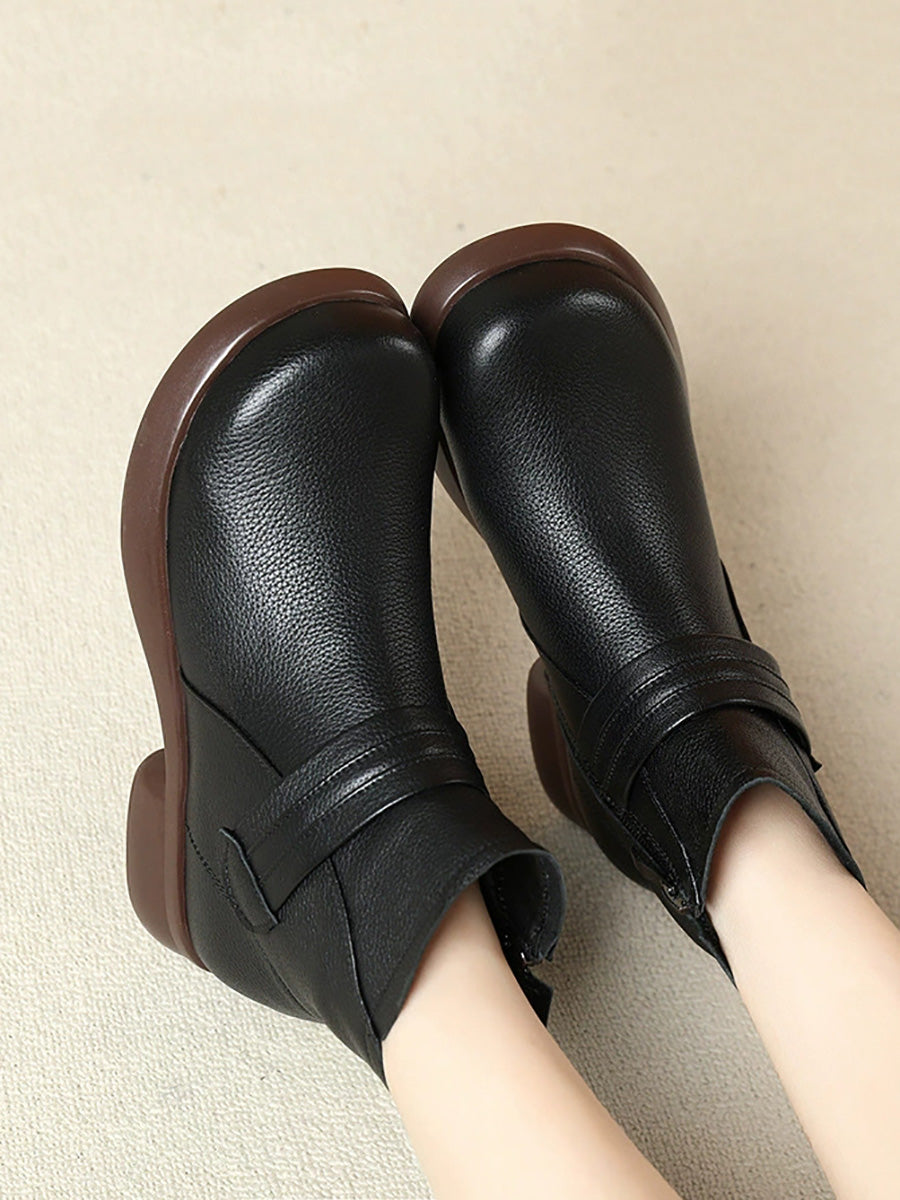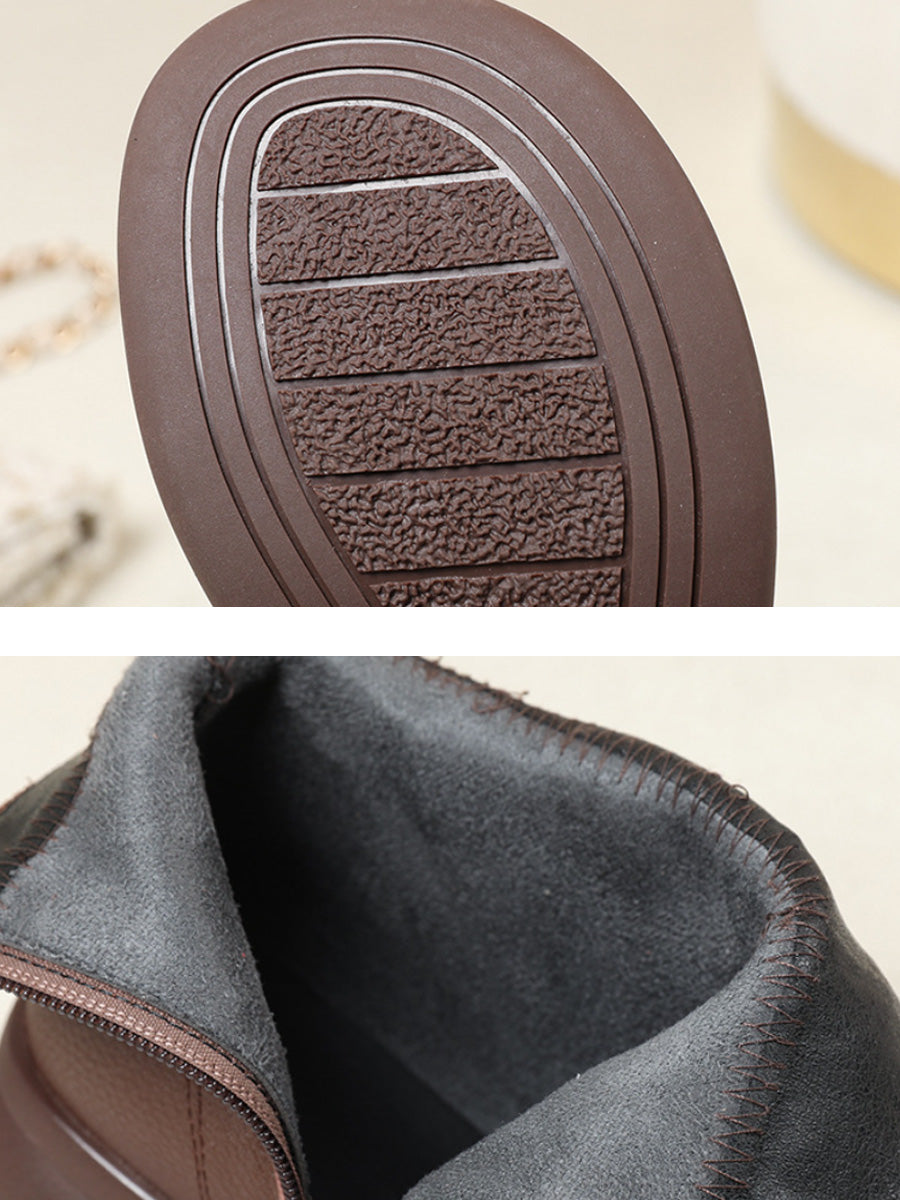Women Winter Genuine Leather Spliced Low Heel Boots