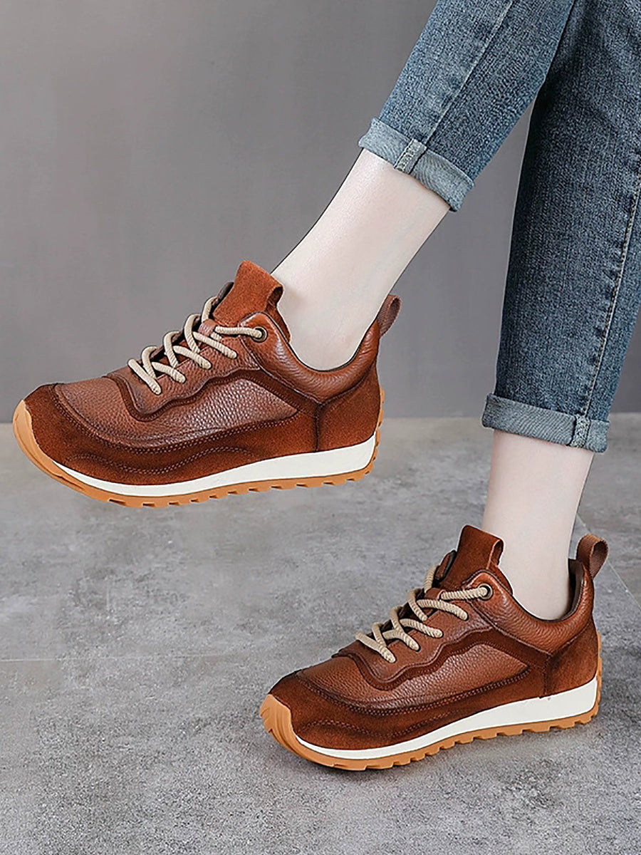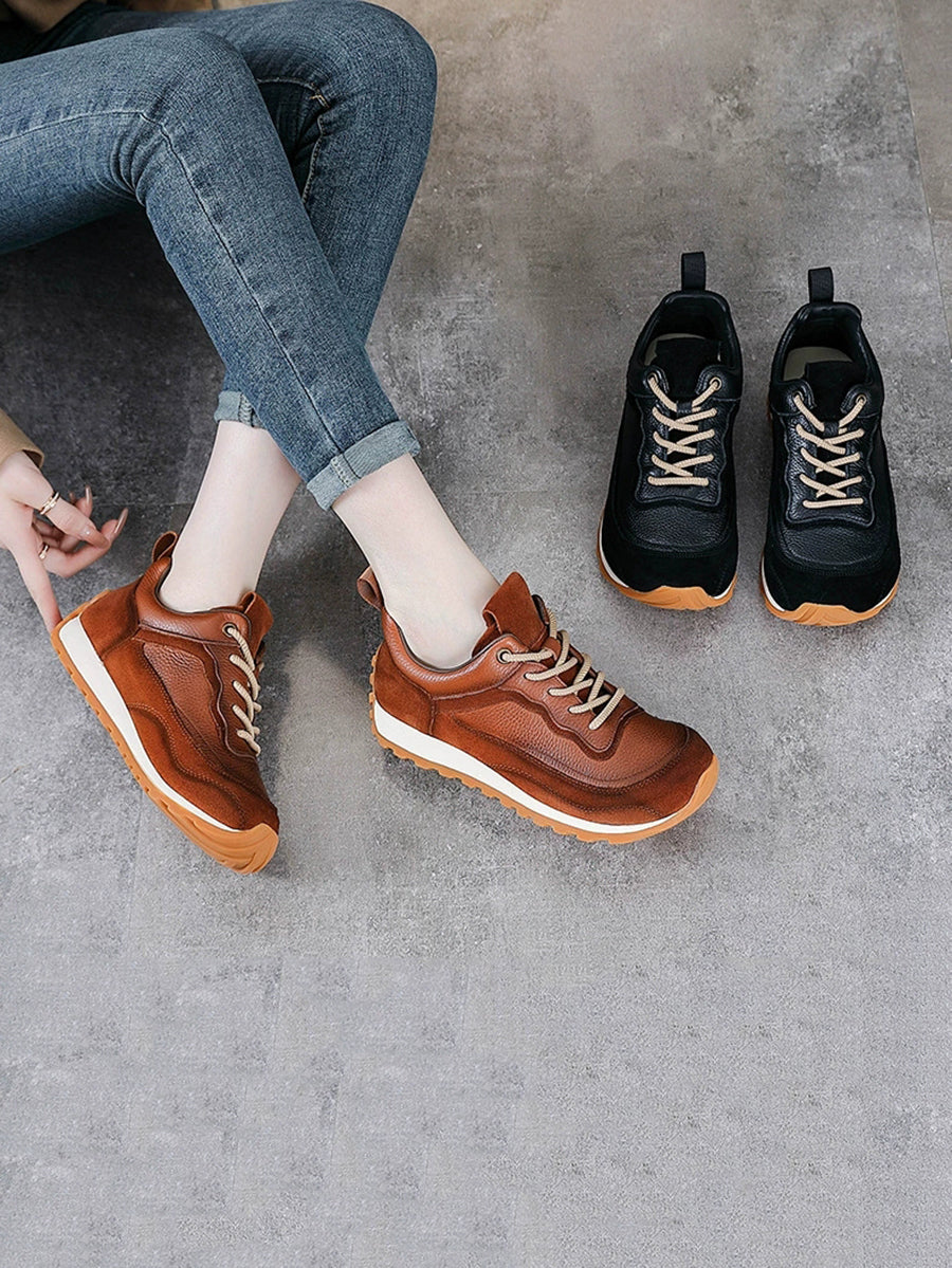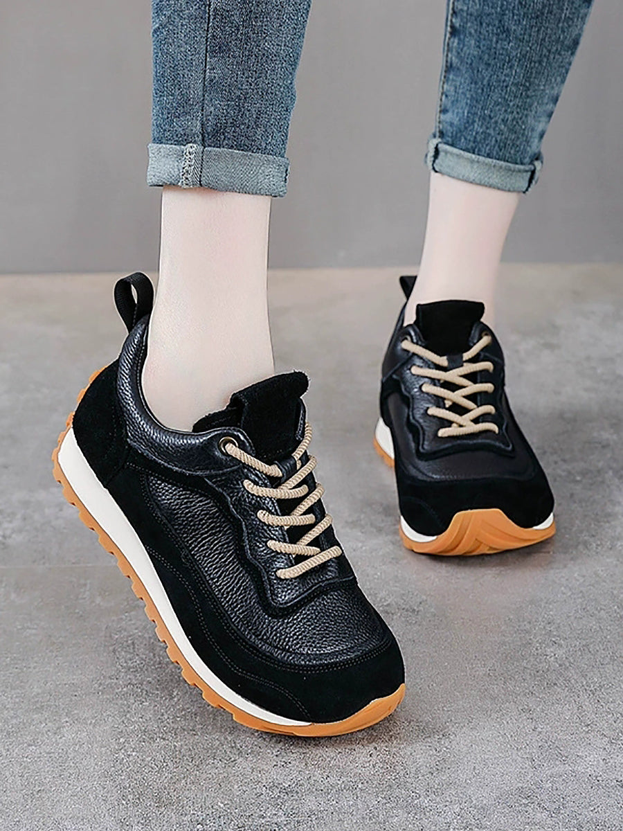 Women Winter Genuine Leather Spliced Platform Shoes