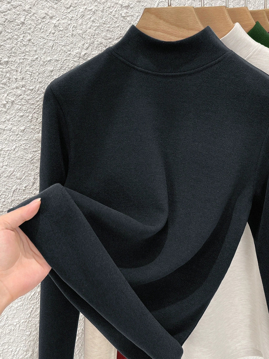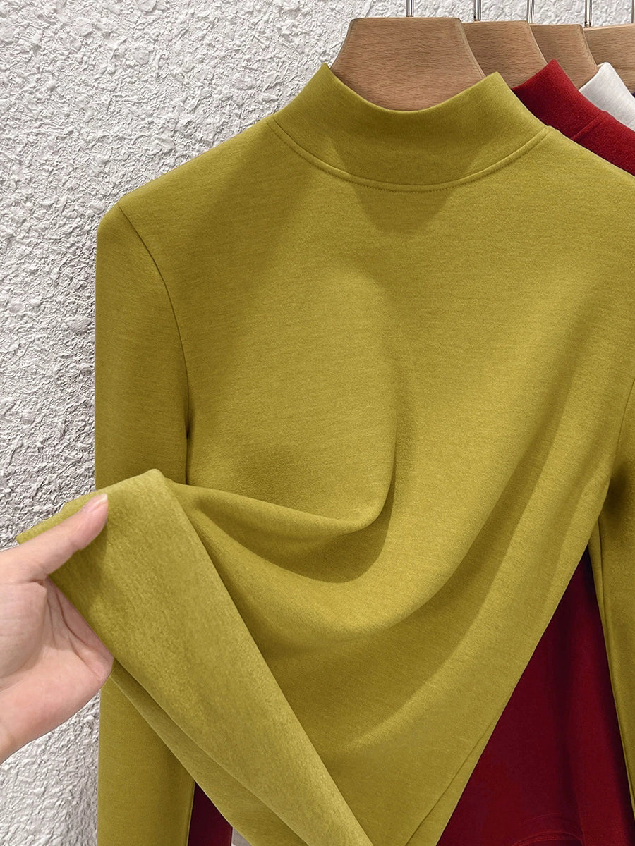 Women Winter Pure COlor Half-Turtleneck Blouse
