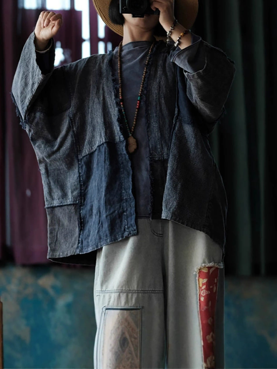 Women Winter Retro Patchwork Shirt Coat