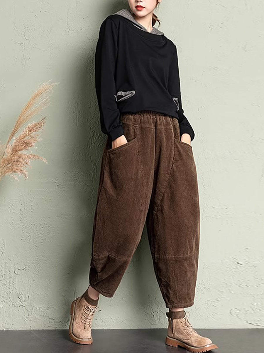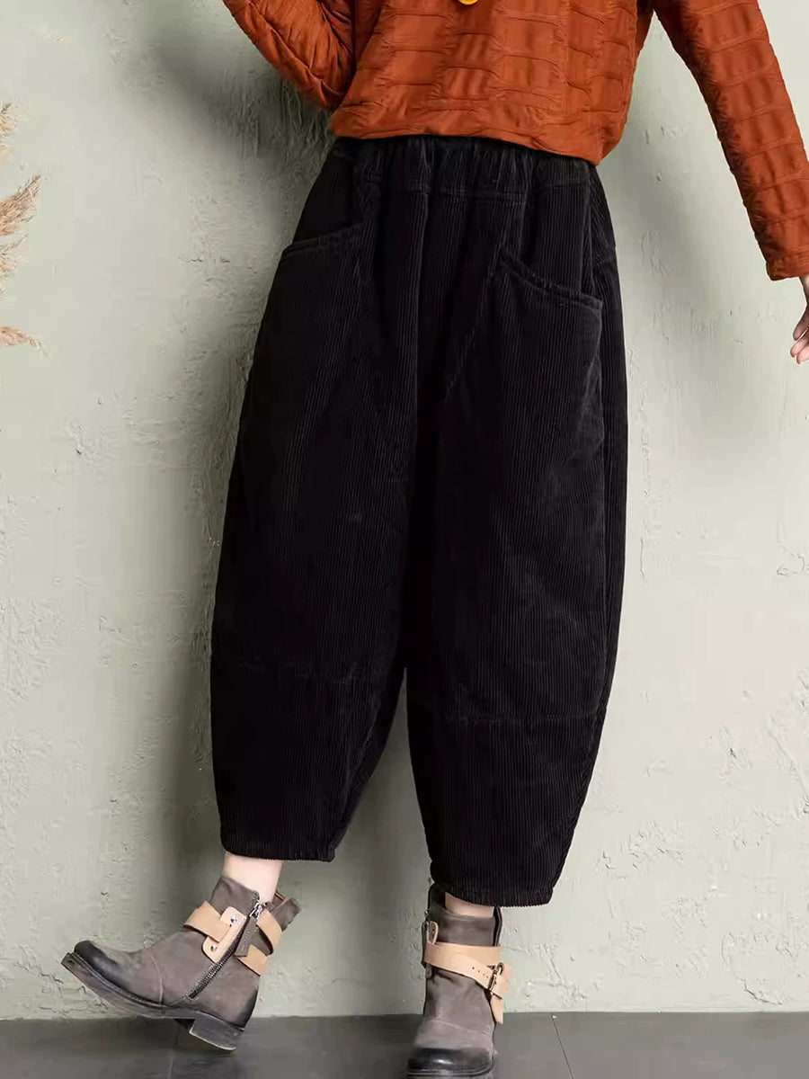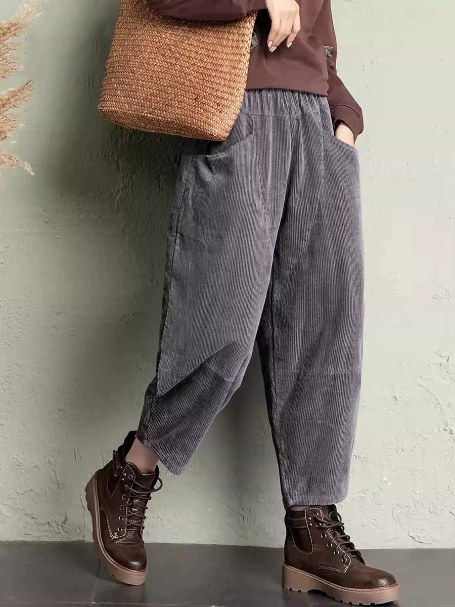 Women Winter Retro Pure Color Corduroy Harem Pants