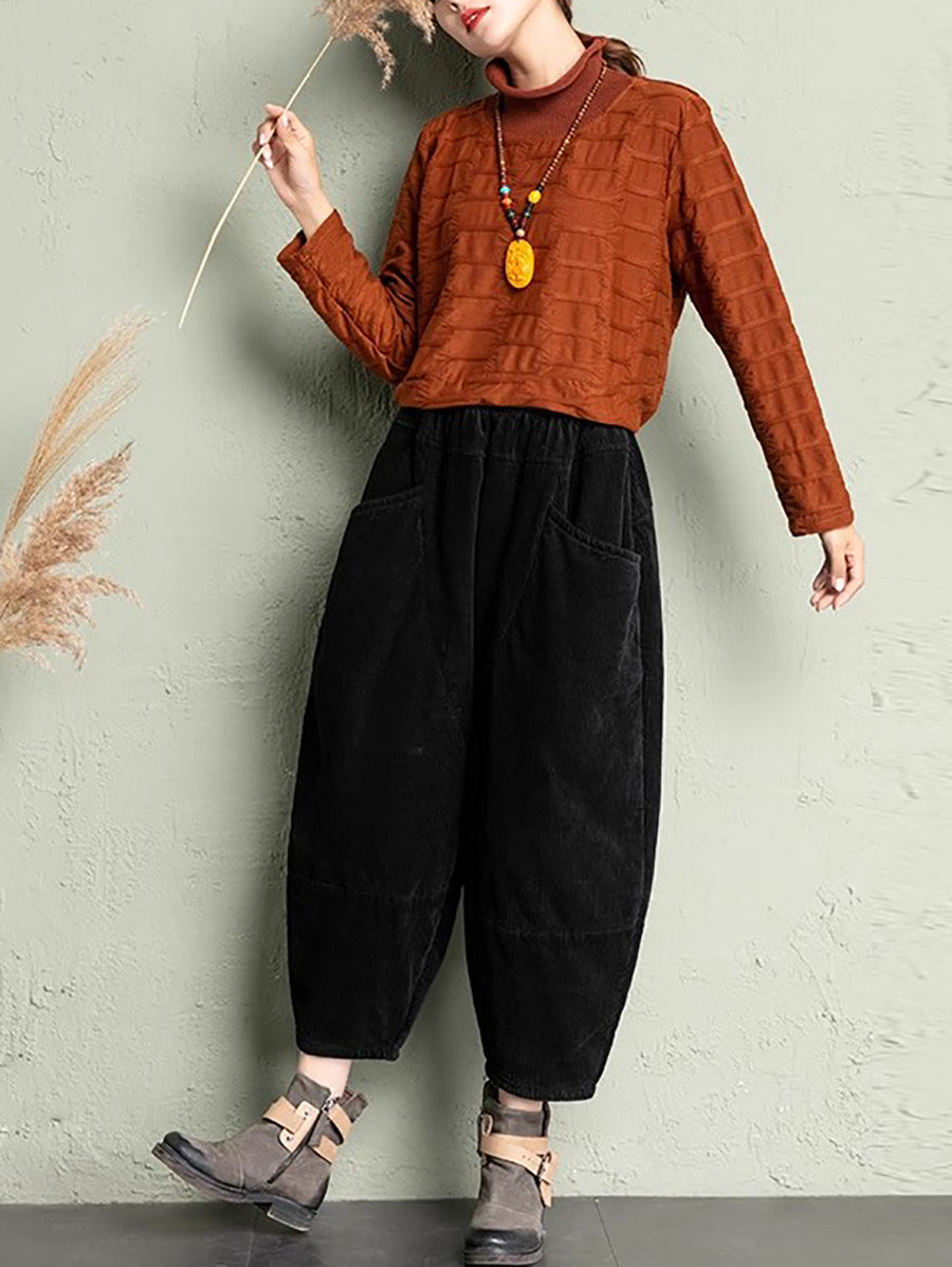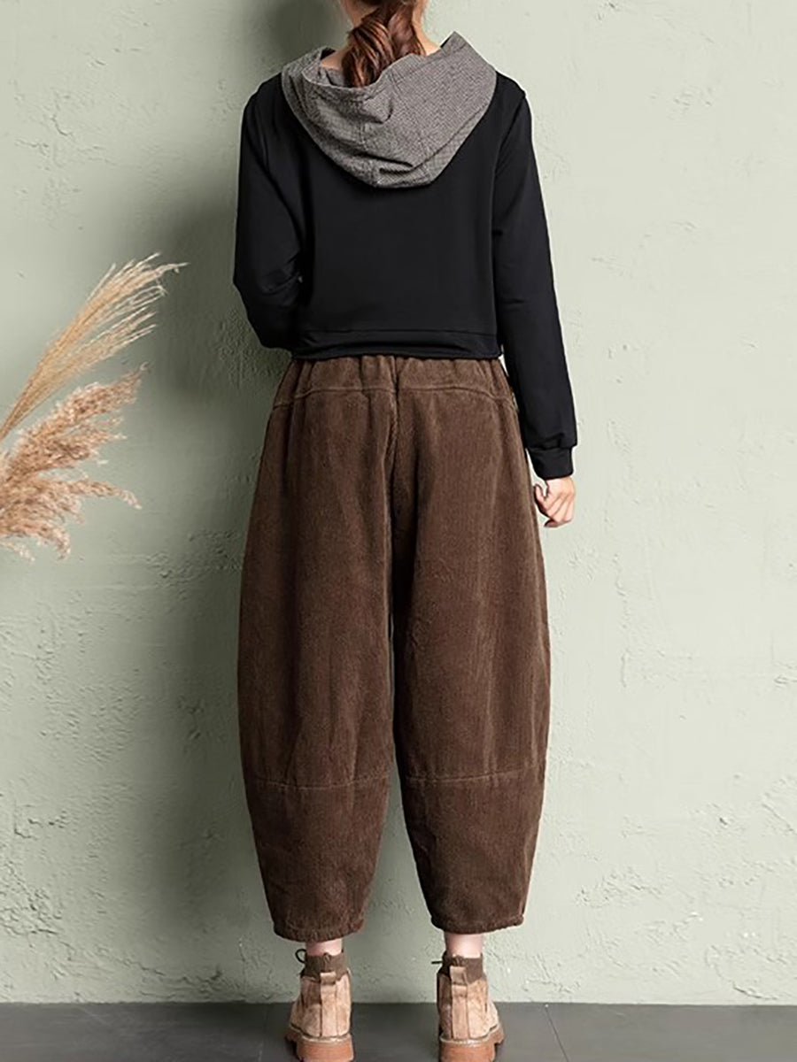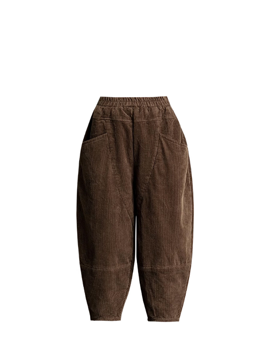 Women Winter Retro Pure Color Corduroy Harem Pants