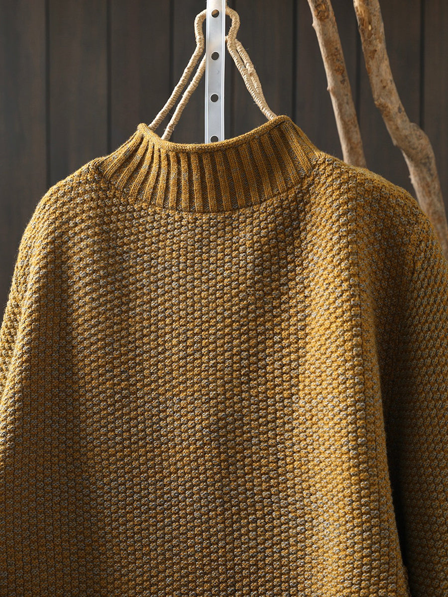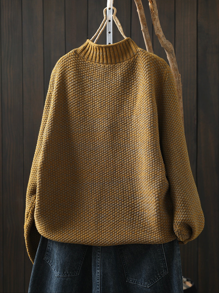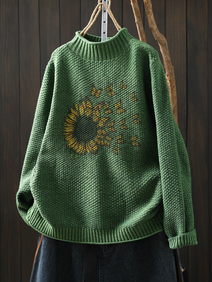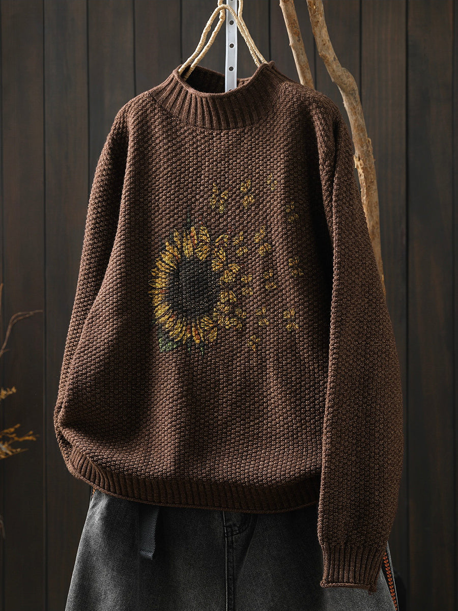 Women Winter Sunflower Knitted Half-turtleneck Sweater