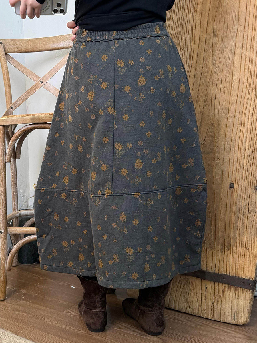 Women Winter Vintage Floral Fleece-lined Cotton Skirt