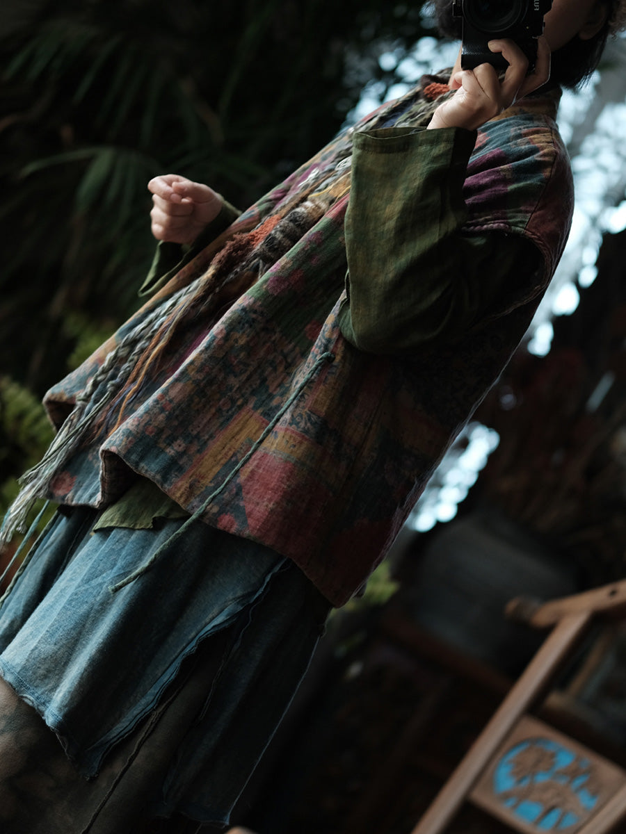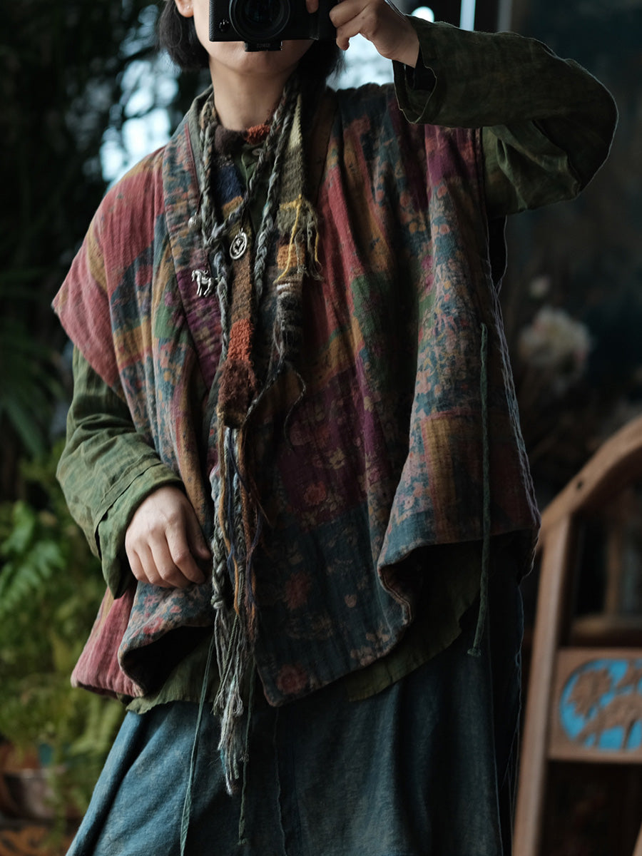 Women Winter Vintage Floral Spliced V-Neck Padded Vest
