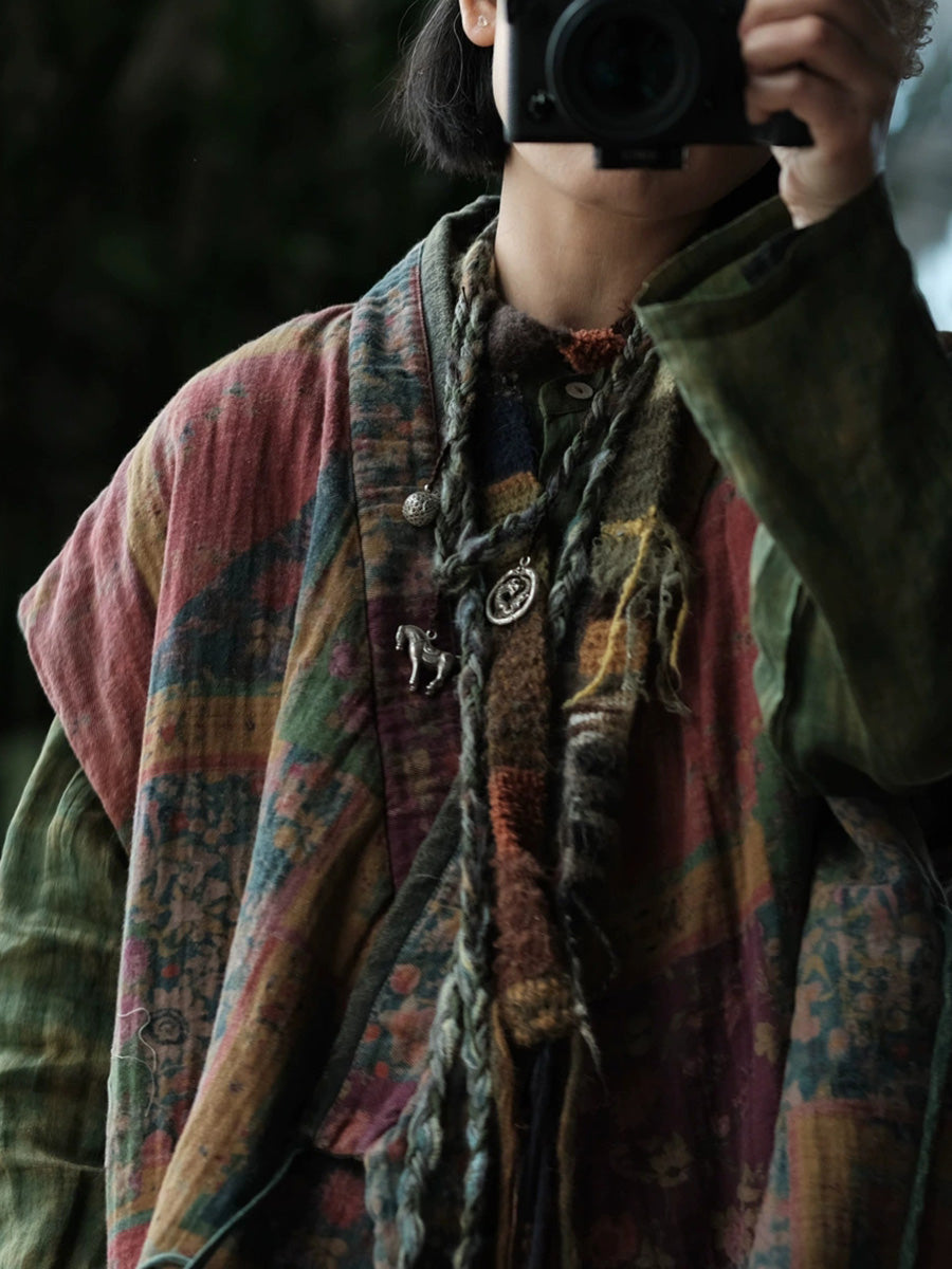 This cotton padded vest showcases a refined vintage aesthetic with delicate floral detailing and a sophisticated V-neck cut. Engineered for layering through autumn and winter, it delivers understated elegance without compromising on warmth. The structured design flatters a range of silhouettes, as demonstrated on our 160cm, 50kg model, making it an essential piece for seasonally-conscious wardrobes.