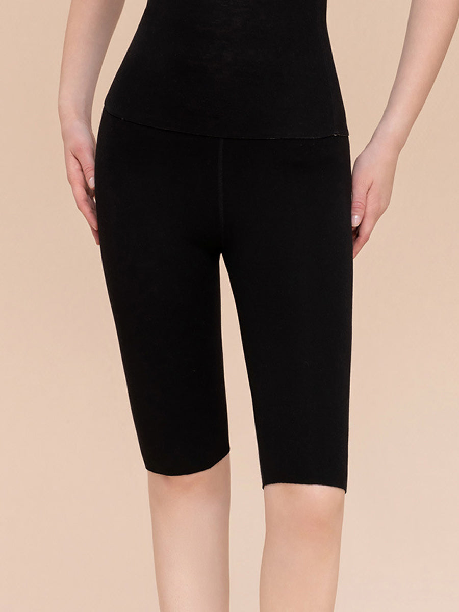 Women Winter Warm Pure Color High-Waist Short Leggings